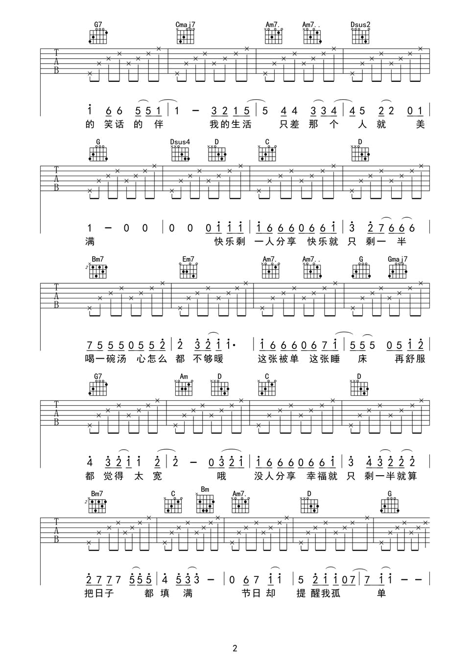 《丁当《一半吉他谱》(G调)》内容来自于互联网,不能保证内容的准确性与完整性,仅供学习交流欣赏,请勿用于其它用途,内容版权归原作者及来源网站所有,如有侵犯到您的权益请来信告知,我们将及时删除。