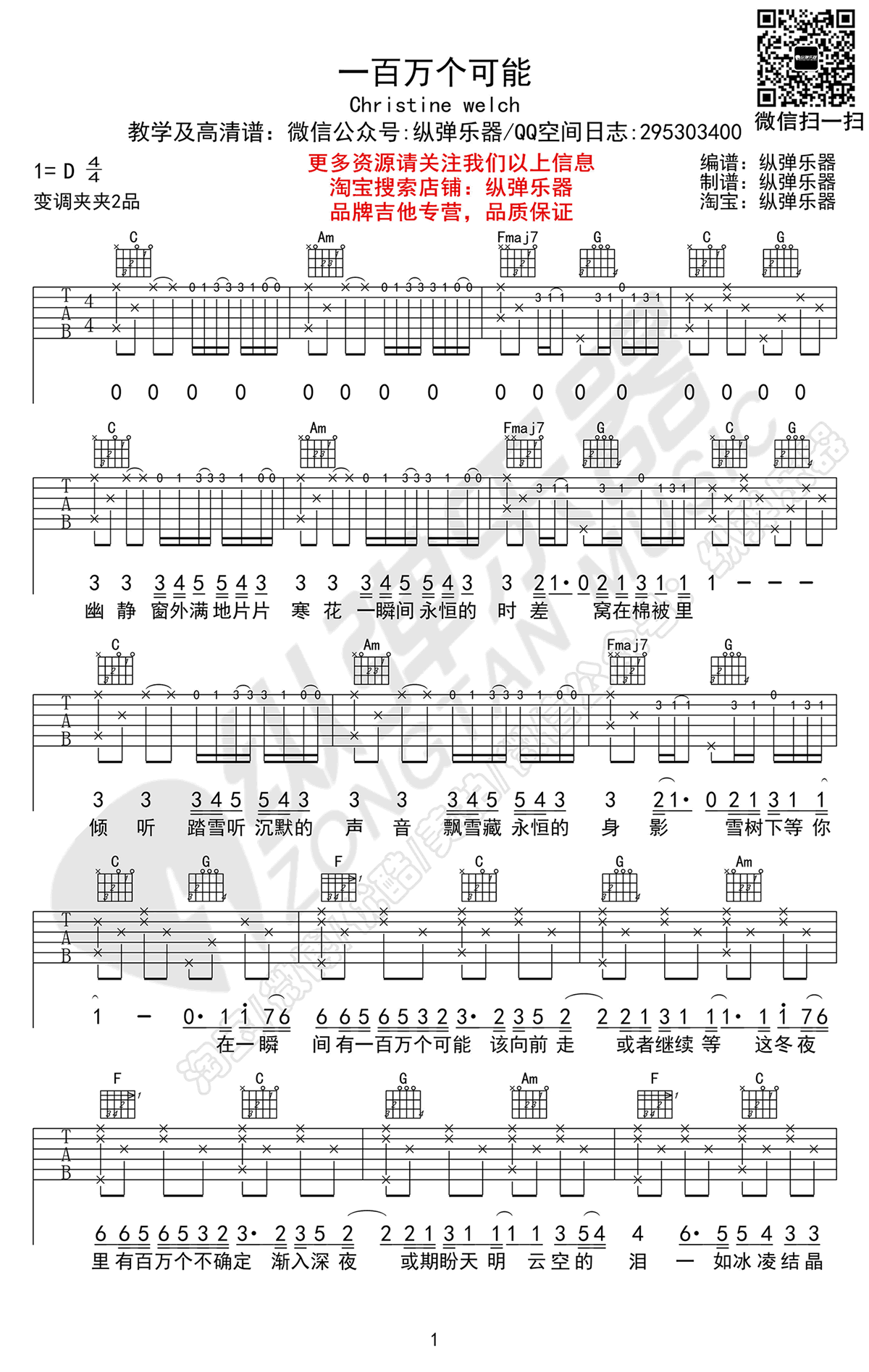 《Christine Welch《一百万个可能吉他谱》》内容来自于互联网,不能保证内容的准确性与完整性,仅供学习交流欣赏,请勿用于其它用途,内容版权归原作者及来源网站所有,如有侵犯到您的权益请来信告知,我们将及时删除。