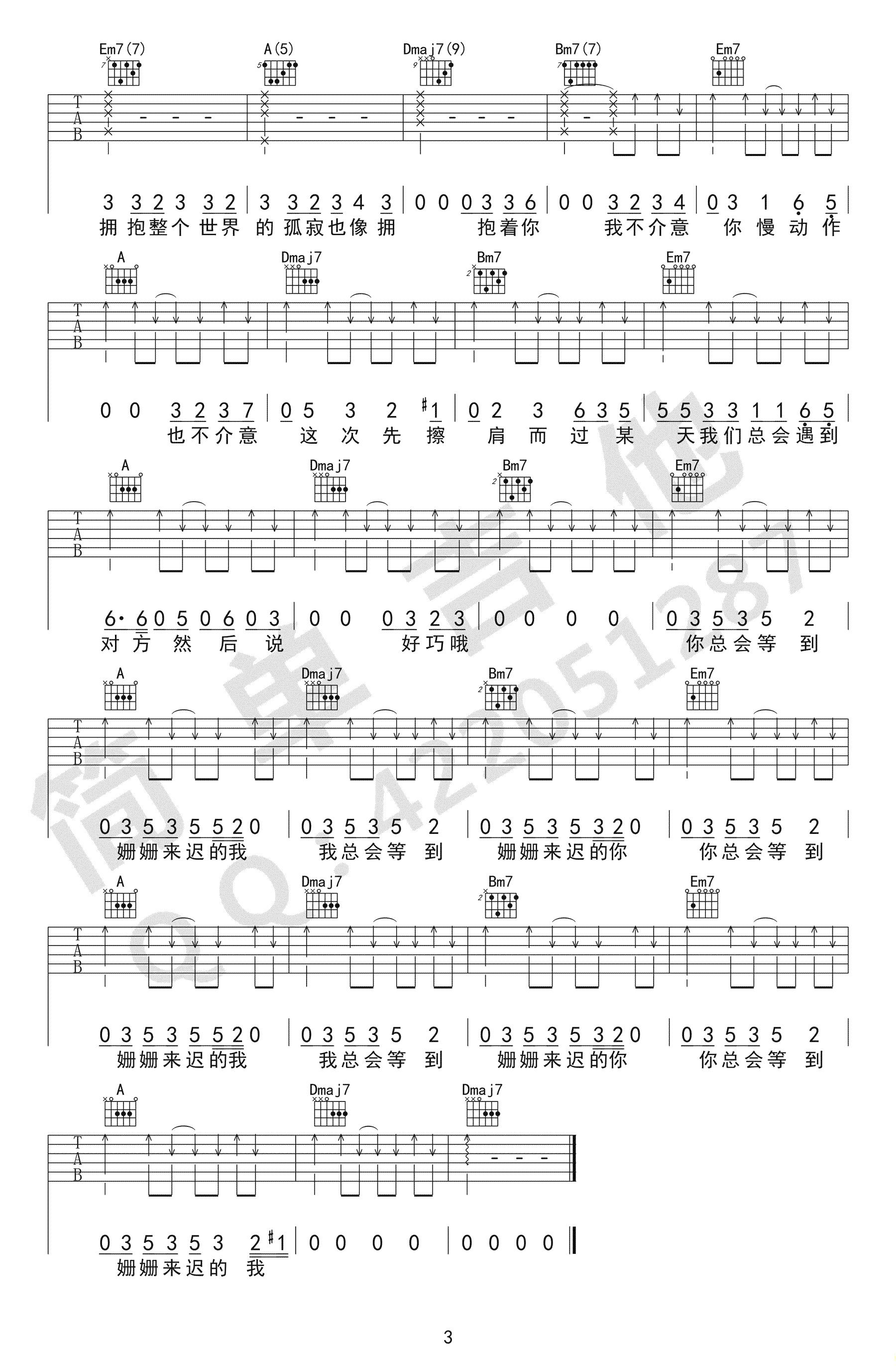 《阿肆《致姗姗来迟的你吉他谱》》内容来自于互联网,不能保证内容的准确性与完整性,仅供学习交流欣赏,请勿用于其它用途,内容版权归原作者及来源网站所有,如有侵犯到您的权益请来信告知,我们将及时删除。
