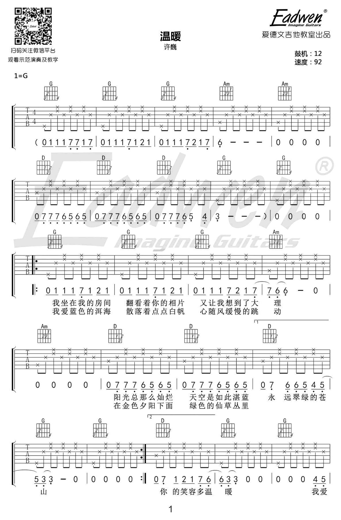 《许巍《温暖吉他谱》(G调)》内容来自于互联网,不能保证内容的准确性与完整性,仅供学习交流欣赏,请勿用于其它用途,内容版权归原作者及来源网站所有,如有侵犯到您的权益请来信告知,我们将及时删除。