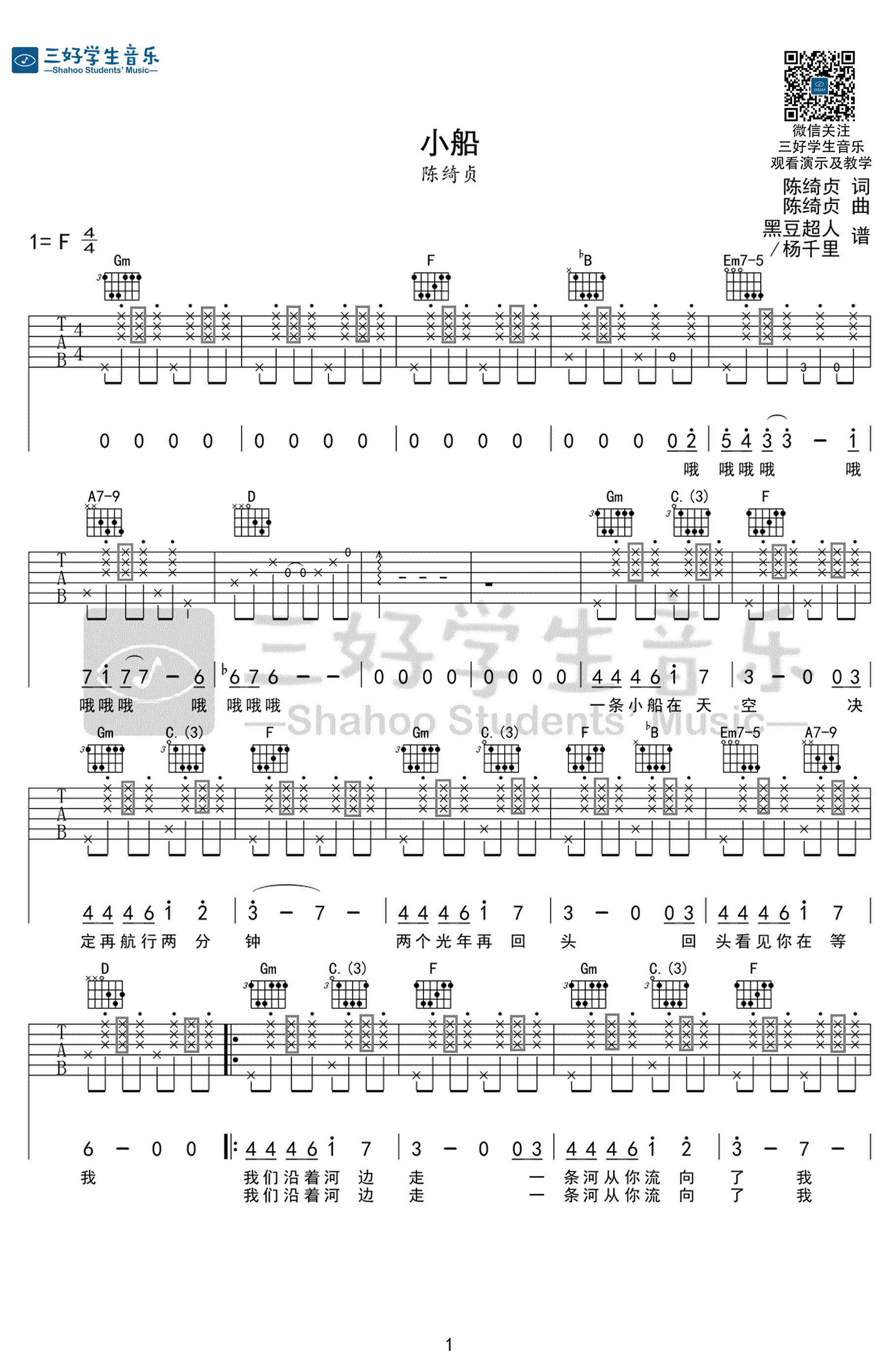 《陈绮贞《小船吉他谱》》内容来自于互联网,不能保证内容的准确性与完整性,仅供学习交流欣赏,请勿用于其它用途,内容版权归原作者及来源网站所有,如有侵犯到您的权益请来信告知,我们将及时删除。
