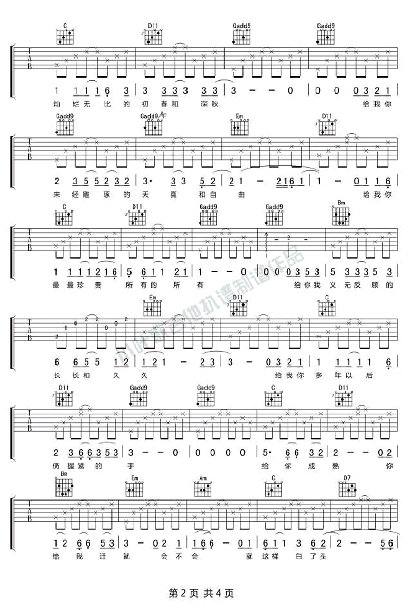 《毛不易《给你给我吉他谱》(G调)》内容来自于互联网,不能保证内容的准确性与完整性,仅供学习交流欣赏,请勿用于其它用途,内容版权归原作者及来源网站所有,如有侵犯到您的权益请来信告知,我们将及时删除。