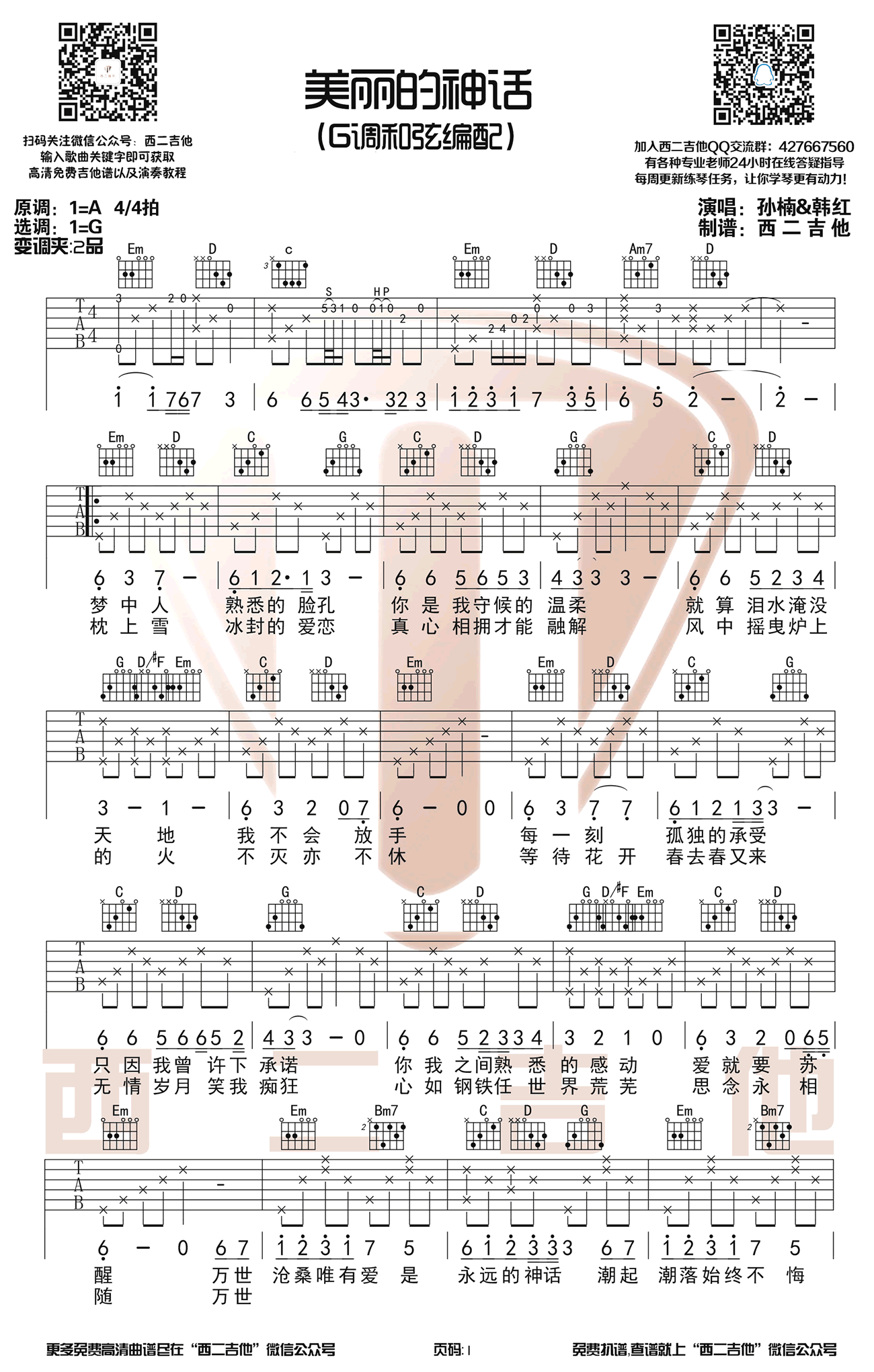 《成龙《美丽的神话吉他谱》(G调)》内容来自于互联网,不能保证内容的准确性与完整性,仅供学习交流欣赏,请勿用于其它用途,内容版权归原作者及来源网站所有,如有侵犯到您的权益请来信告知,我们将及时删除。