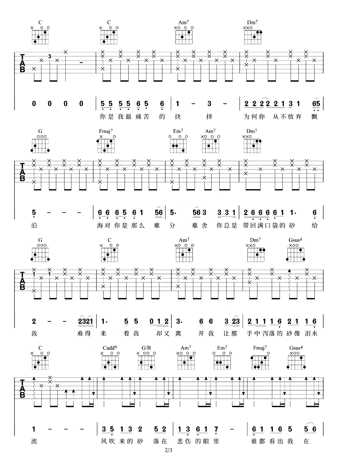 《陈鸿宇《哭砂吉他谱》(C调)》内容来自于互联网,不能保证内容的准确性与完整性,仅供学习交流欣赏,请勿用于其它用途,内容版权归原作者及来源网站所有,如有侵犯到您的权益请来信告知,我们将及时删除。