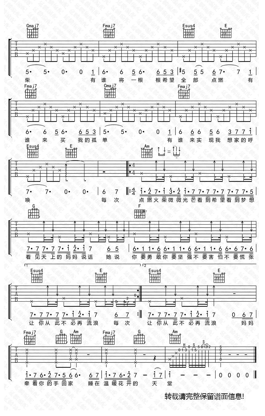 《齐秦《火柴天堂吉他谱》》内容来自于互联网,不能保证内容的准确性与完整性,仅供学习交流欣赏,请勿用于其它用途,内容版权归原作者及来源网站所有,如有侵犯到您的权益请来信告知,我们将及时删除。