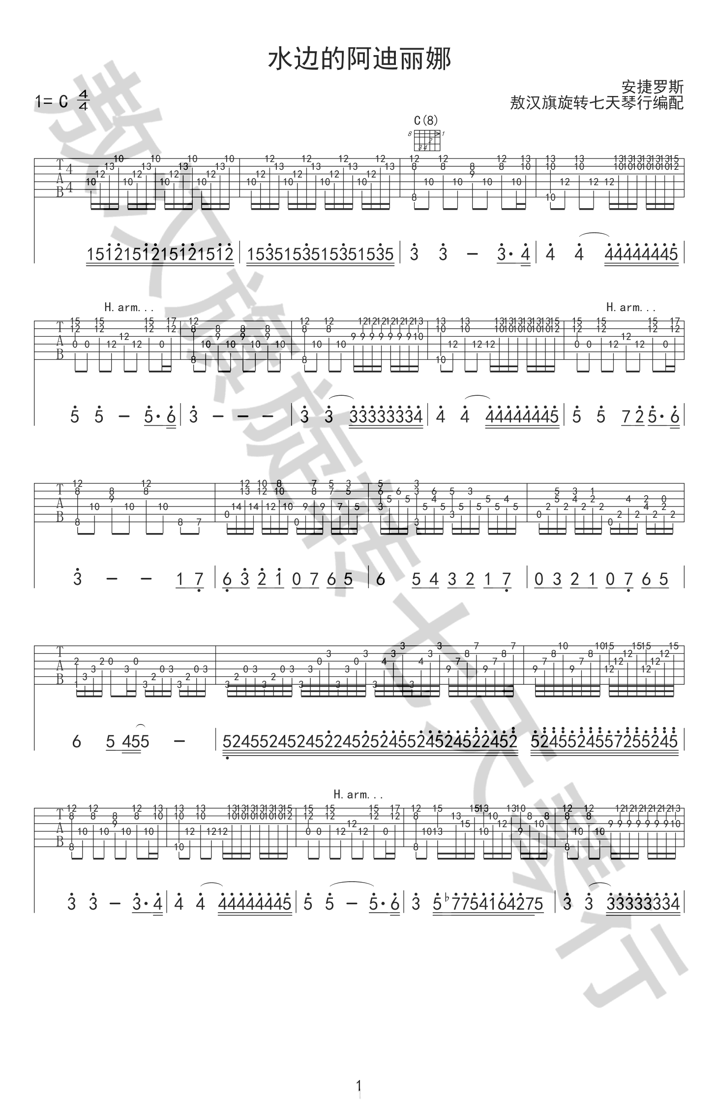 《《水边的阿狄丽娜吉他谱》(C调)》内容来自于互联网,不能保证内容的准确性与完整性,仅供学习交流欣赏,请勿用于其它用途,内容版权归原作者及来源网站所有,如有侵犯到您的权益请来信告知,我们将及时删除。