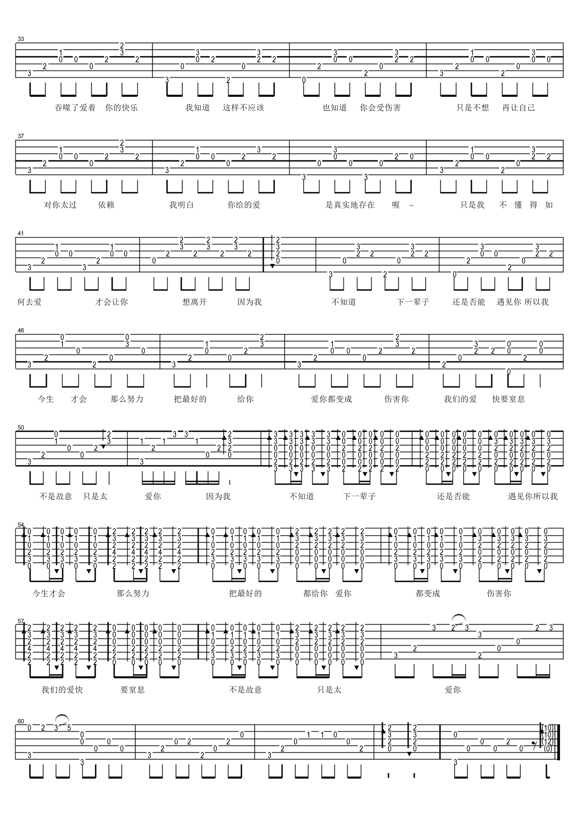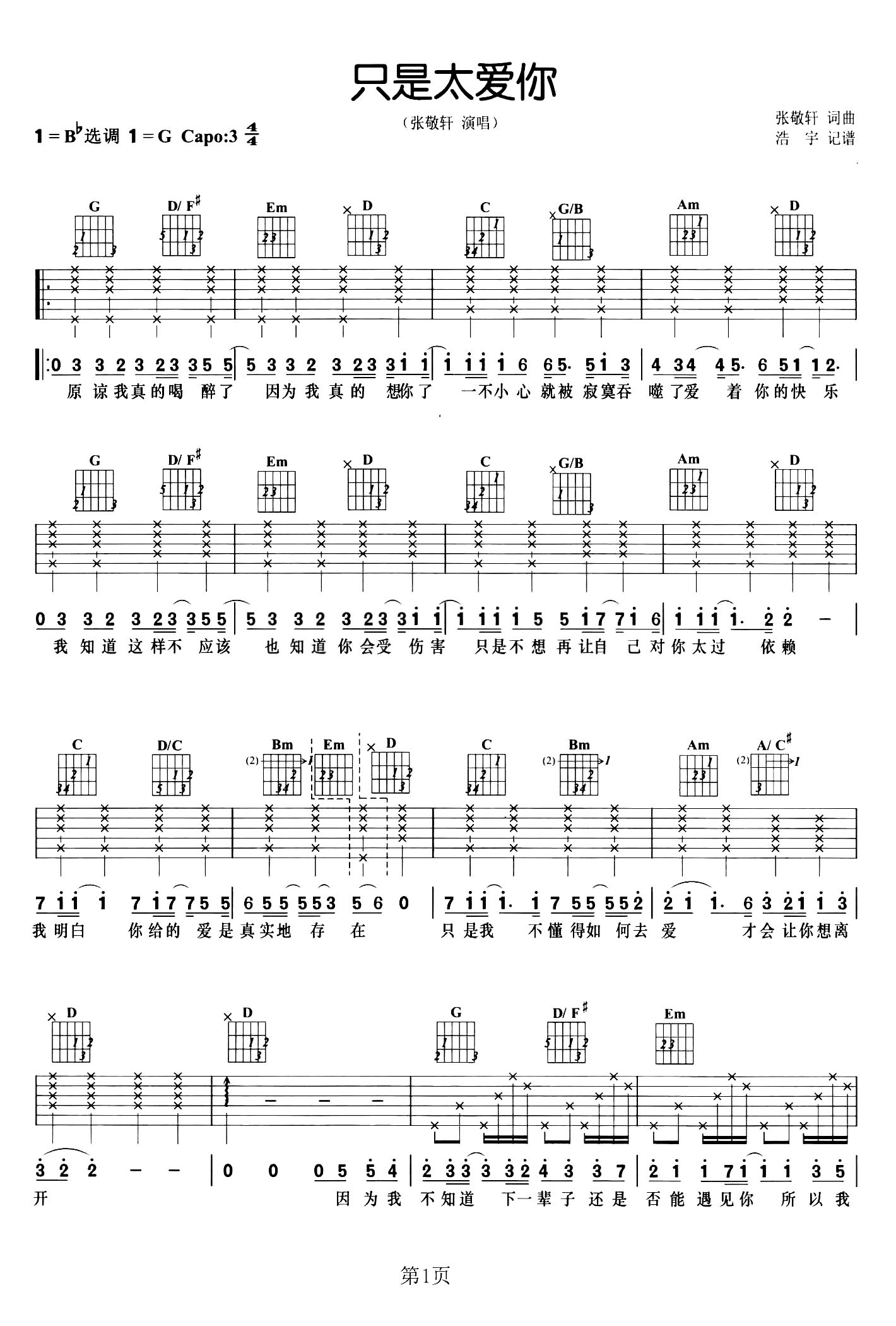《张敬轩《只是太爱你吉他谱》》内容来自于互联网,不能保证内容的准确性与完整性,仅供学习交流欣赏,请勿用于其它用途,内容版权归原作者及来源网站所有,如有侵犯到您的权益请来信告知,我们将及时删除。