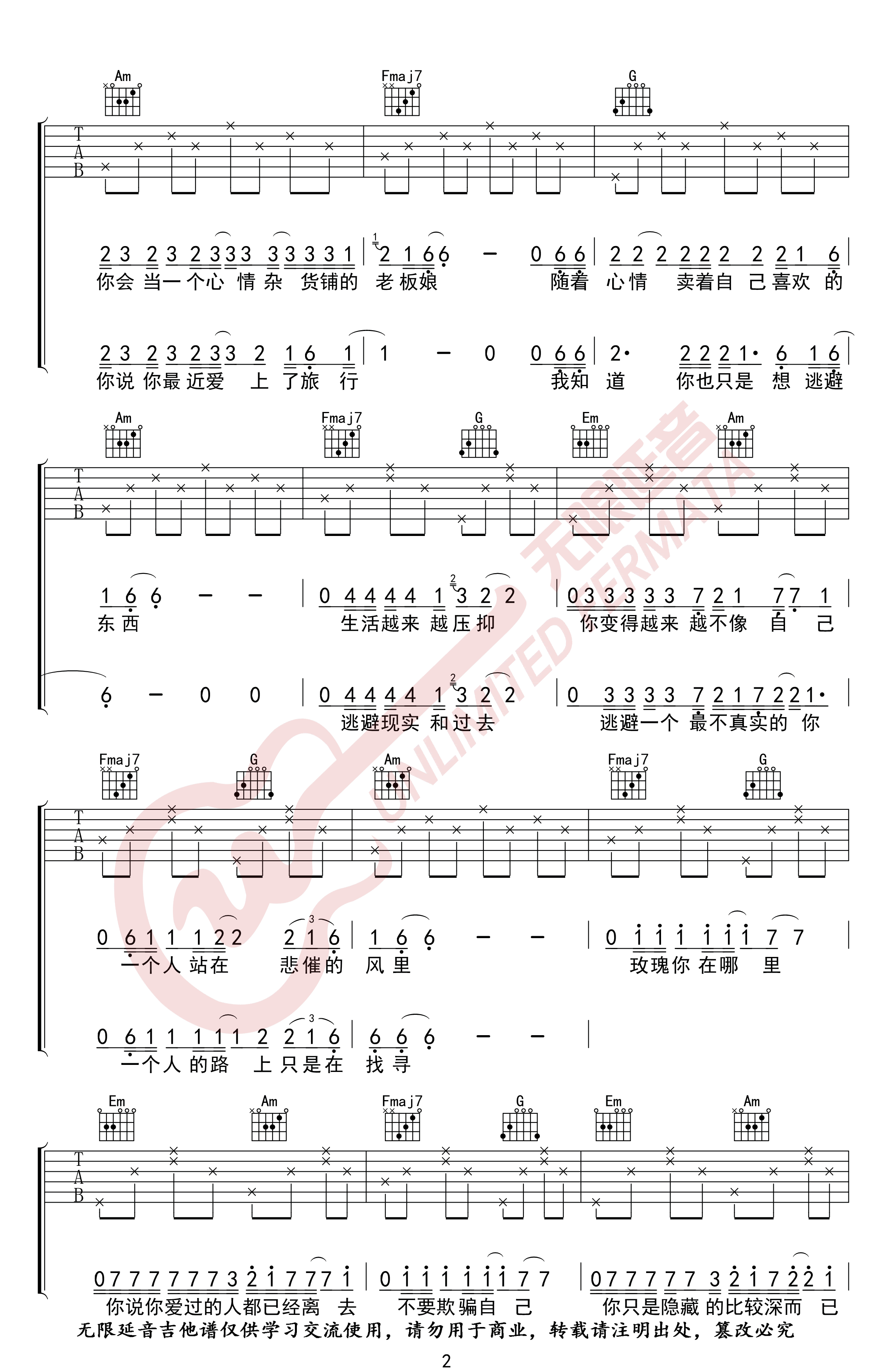 《贰佰《玫瑰吉他谱》(C调)》内容来自于互联网,不能保证内容的准确性与完整性,仅供学习交流欣赏,请勿用于其它用途,内容版权归原作者及来源网站所有,如有侵犯到您的权益请来信告知,我们将及时删除。