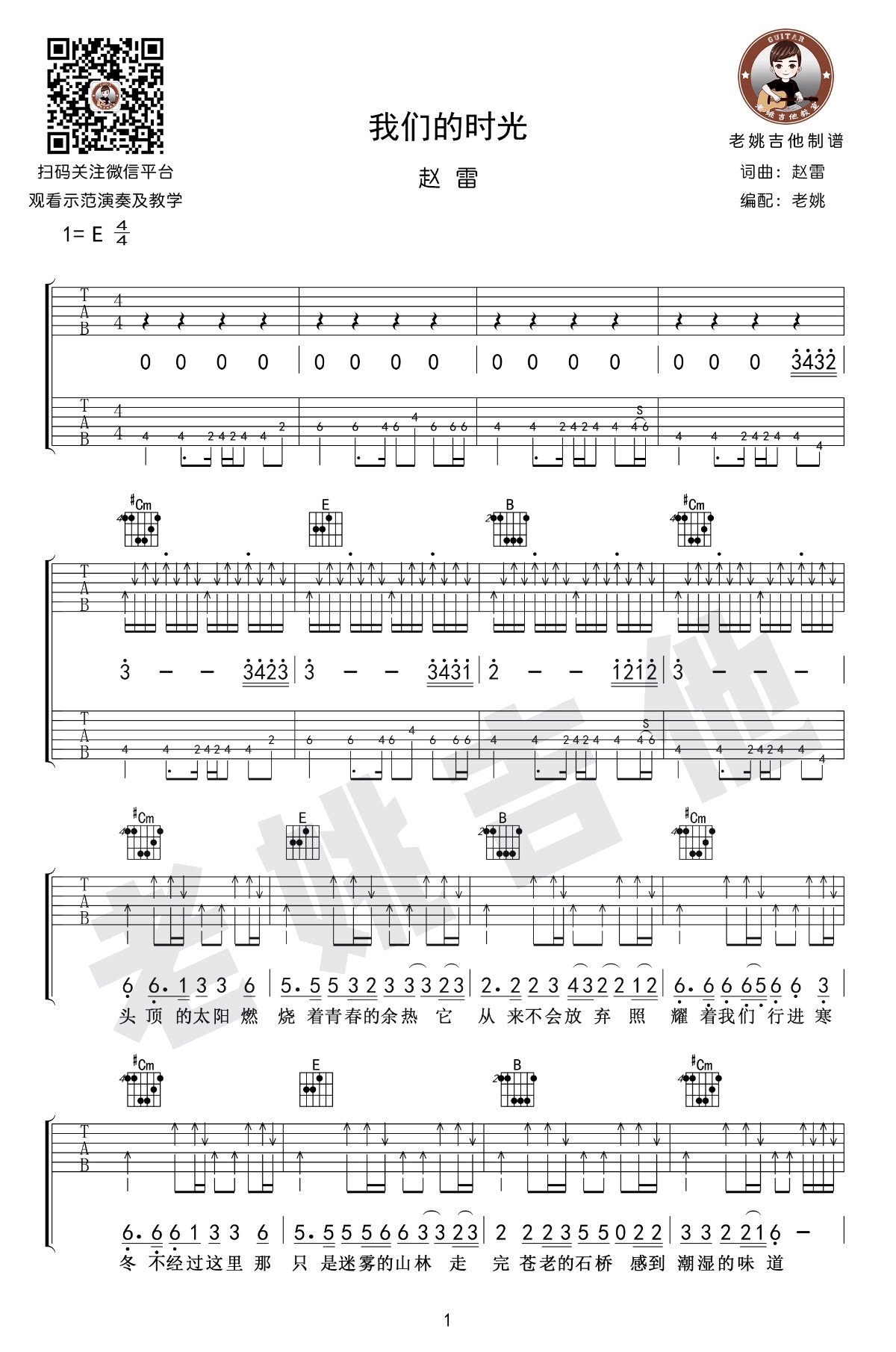 《赵雷《我们的时光吉他谱》》内容来自于互联网,不能保证内容的准确性与完整性,仅供学习交流欣赏,请勿用于其它用途,内容版权归原作者及来源网站所有,如有侵犯到您的权益请来信告知,我们将及时删除。