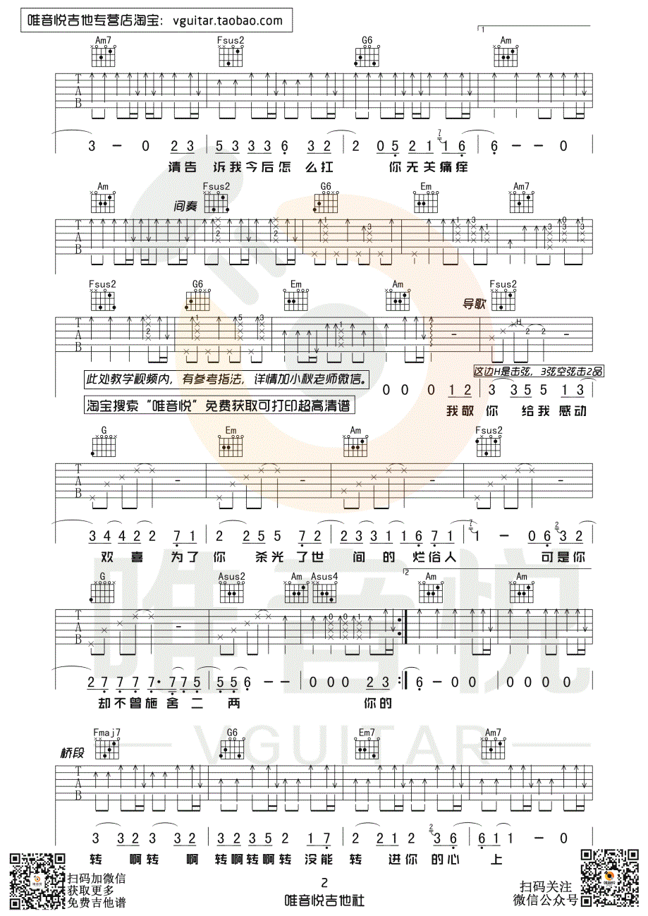这首由陈雪凝演唱的歌曲,原调为bE,C调指法,女生在夹夹三品,男生在3-5品。曲谱以六线谱形式呈现,唯音悦编配,并有三张图片谱。歌曲结构简单,扫弦和走向都易学,采用了经典的马蹄扫弦节奏。主歌、导歌以及副歌A的和弦走向为Fsus2、G6、Em7、Am7,而副歌B