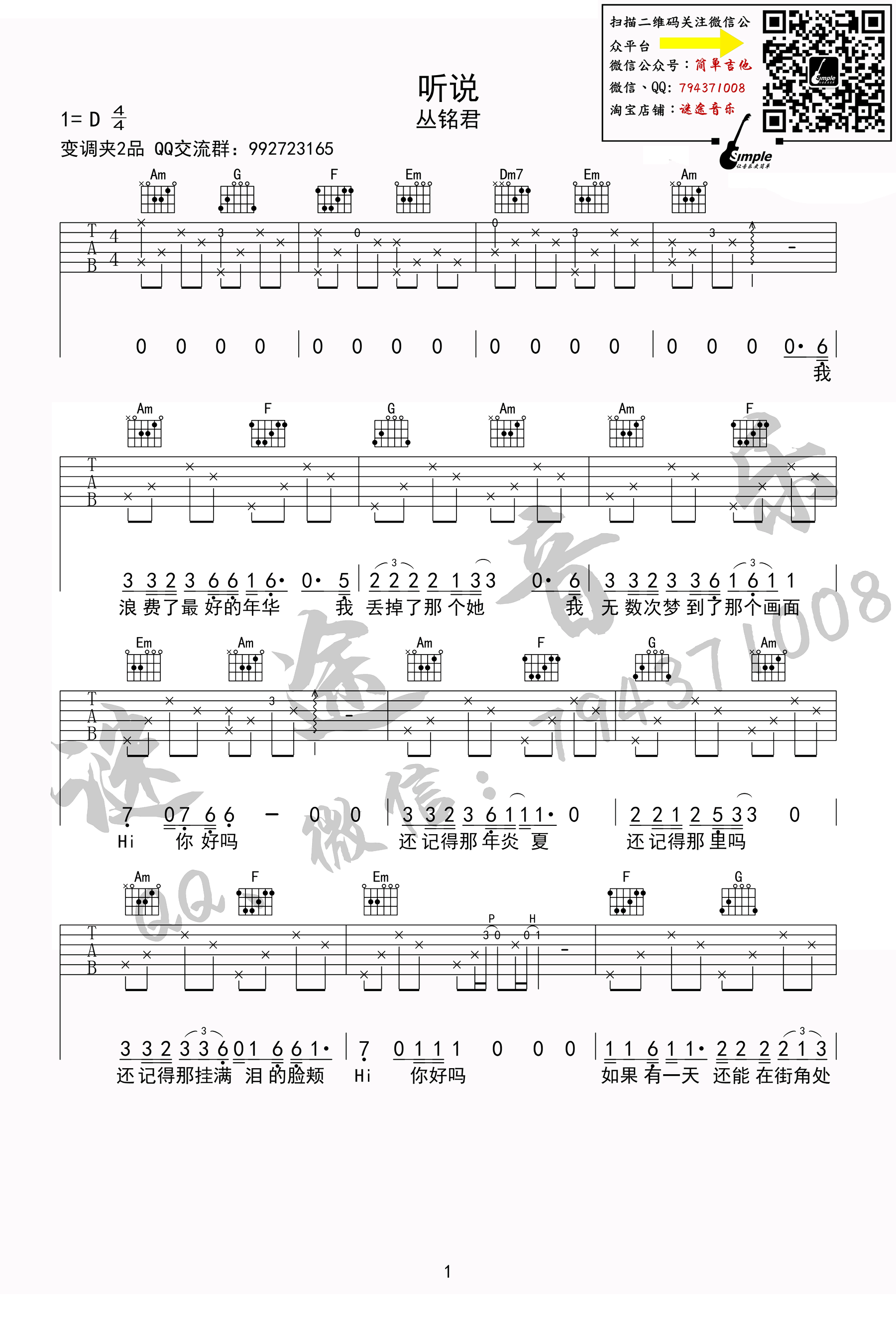 《《听说吉他谱》》内容来自于互联网,不能保证内容的准确性与完整性,仅供学习交流欣赏,请勿用于其它用途,内容版权归原作者及来源网站所有,如有侵犯到您的权益请来信告知,我们将及时删除。