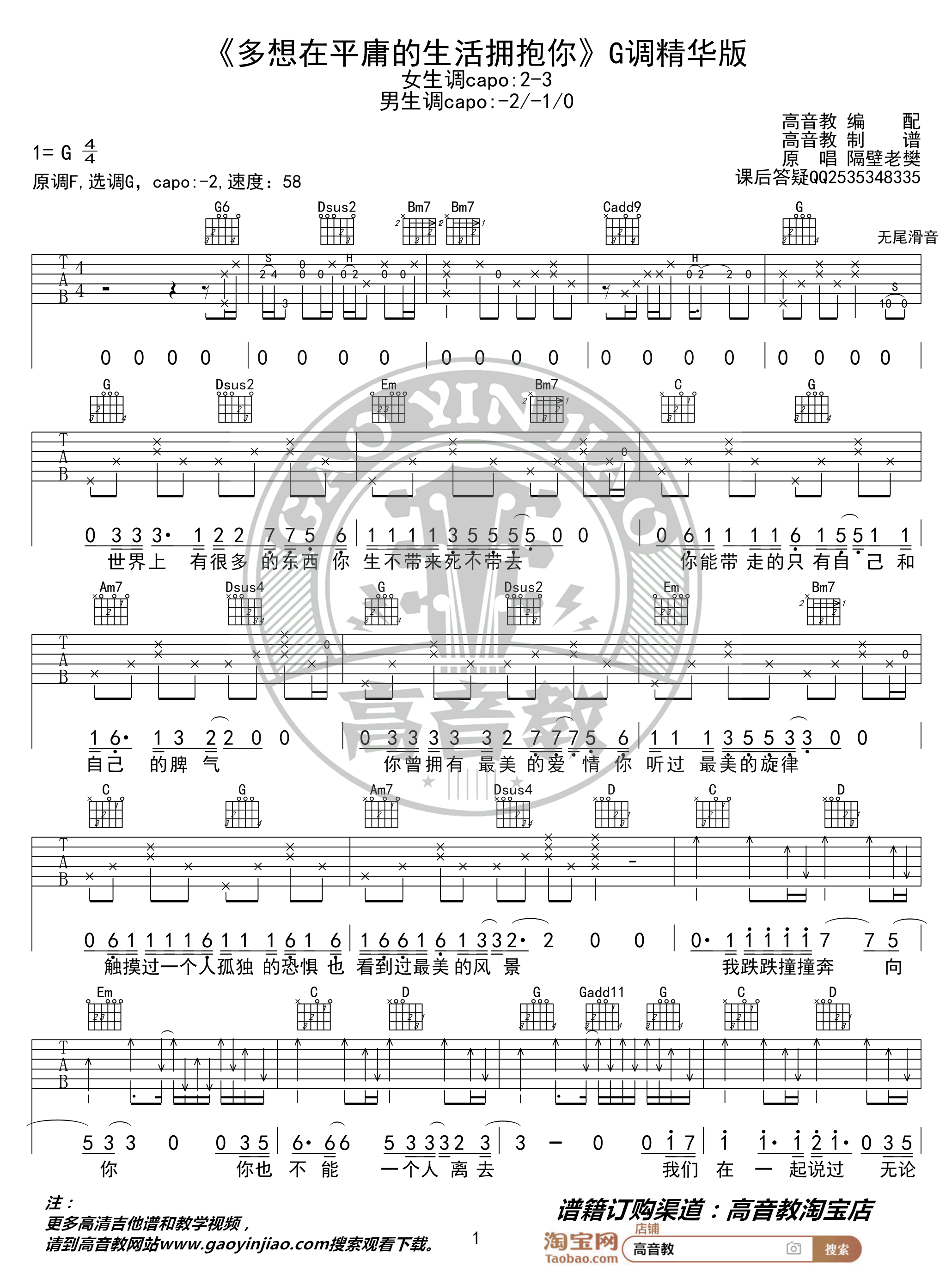 《隔壁老樊《多想在平庸的生活拥抱你吉他谱》(G调)》内容来自于互联网,不能保证内容的准确性与完整性,仅供学习交流欣赏,请勿用于其它用途,内容版权归原作者及来源网站所有,如有侵犯到您的权益请来信告知,我们将及时删除。