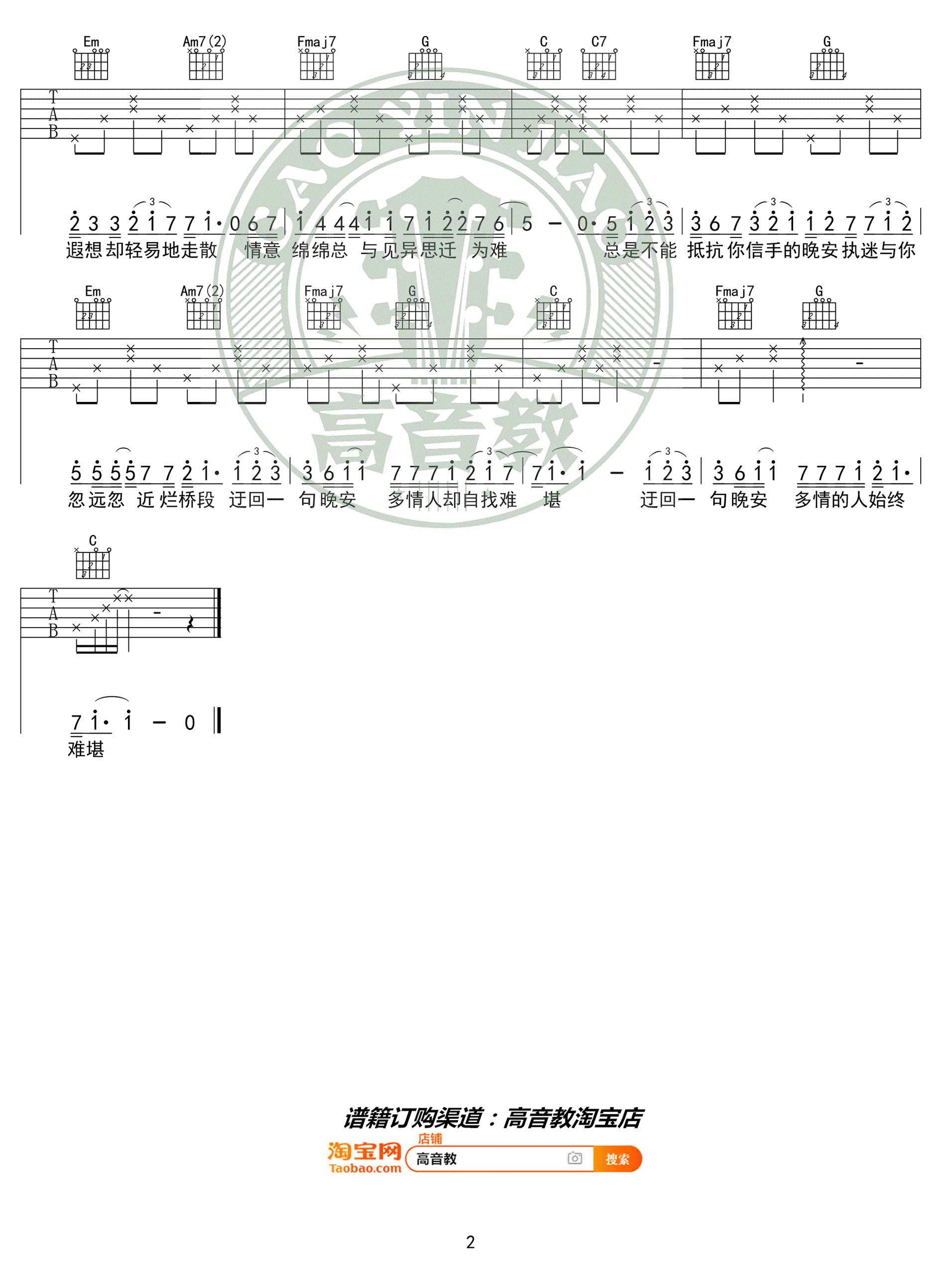 《颜人中《晚安吉他谱》(C调)》内容来自于互联网,不能保证内容的准确性与完整性,仅供学习交流欣赏,请勿用于其它用途,内容版权归原作者及来源网站所有,如有侵犯到您的权益请来信告知,我们将及时删除。