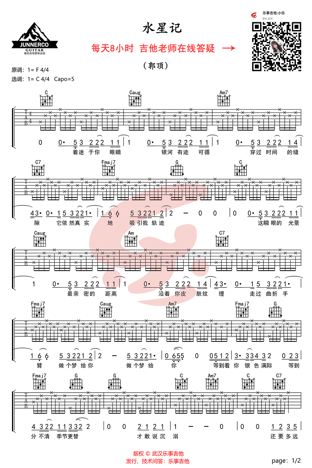 《郭顶《水星记吉他谱》(C调)》内容来自于互联网,不能保证内容的准确性与完整性,仅供学习交流欣赏,请勿用于其它用途,内容版权归原作者及来源网站所有,如有侵犯到您的权益请来信告知,我们将及时删除。