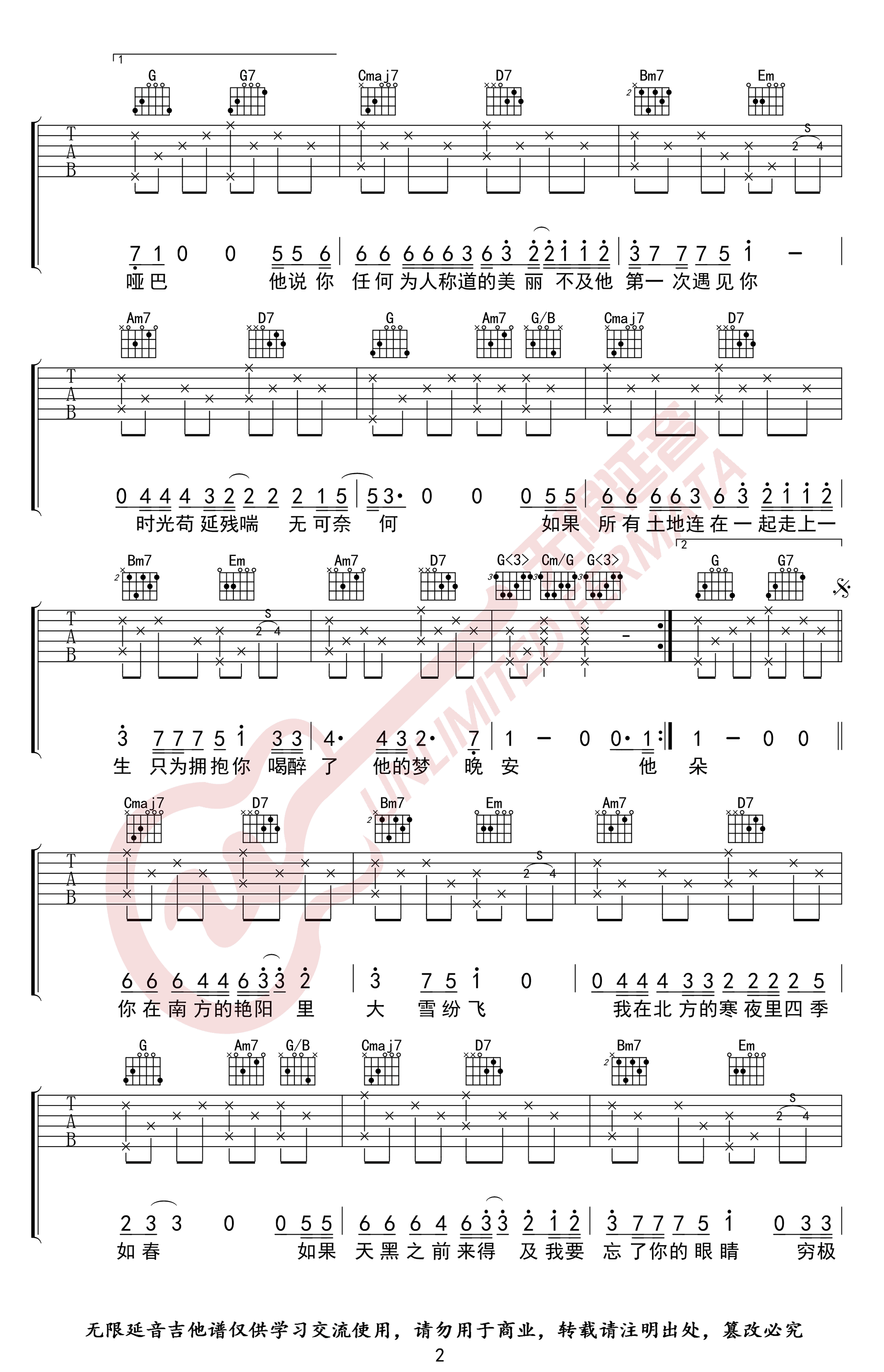 《马頔《南山南吉他谱》(G调)》内容来自于互联网,不能保证内容的准确性与完整性,仅供学习交流欣赏,请勿用于其它用途,内容版权归原作者及来源网站所有,如有侵犯到您的权益请来信告知,我们将及时删除。
