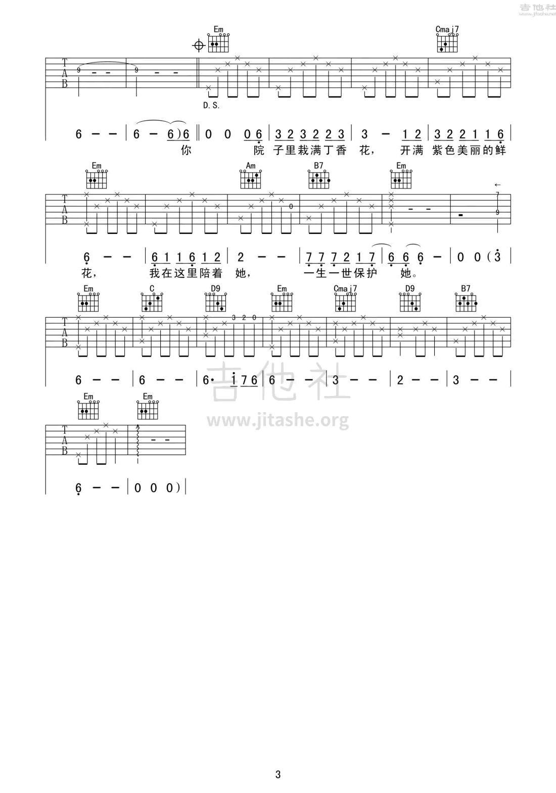 《唐磊《丁香花吉他谱》(G调)》内容来自于互联网,不能保证内容的准确性与完整性,仅供学习交流欣赏,请勿用于其它用途,内容版权归原作者及来源网站所有,如有侵犯到您的权益请来信告知,我们将及时删除。
