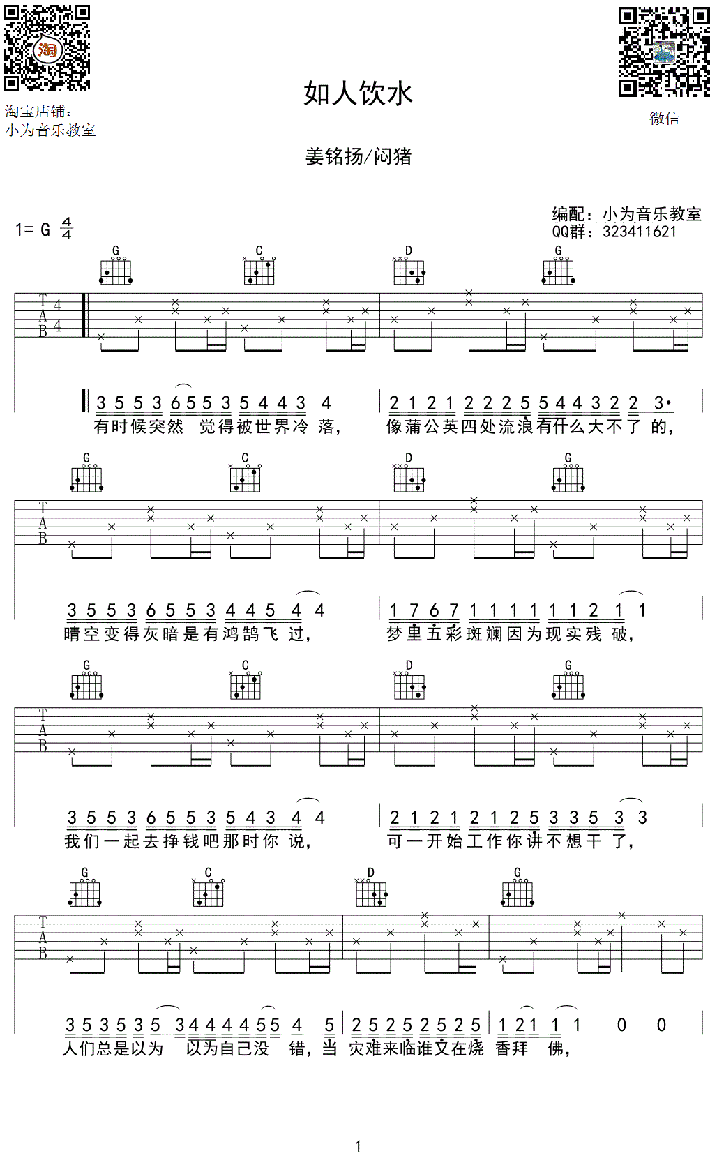 《姜铭扬悠扬《如人饮水吉他谱》(G调)》内容来自于互联网,不能保证内容的准确性与完整性,仅供学习交流欣赏,请勿用于其它用途,内容版权归原作者及来源网站所有,如有侵犯到您的权益请来信告知,我们将及时删除。