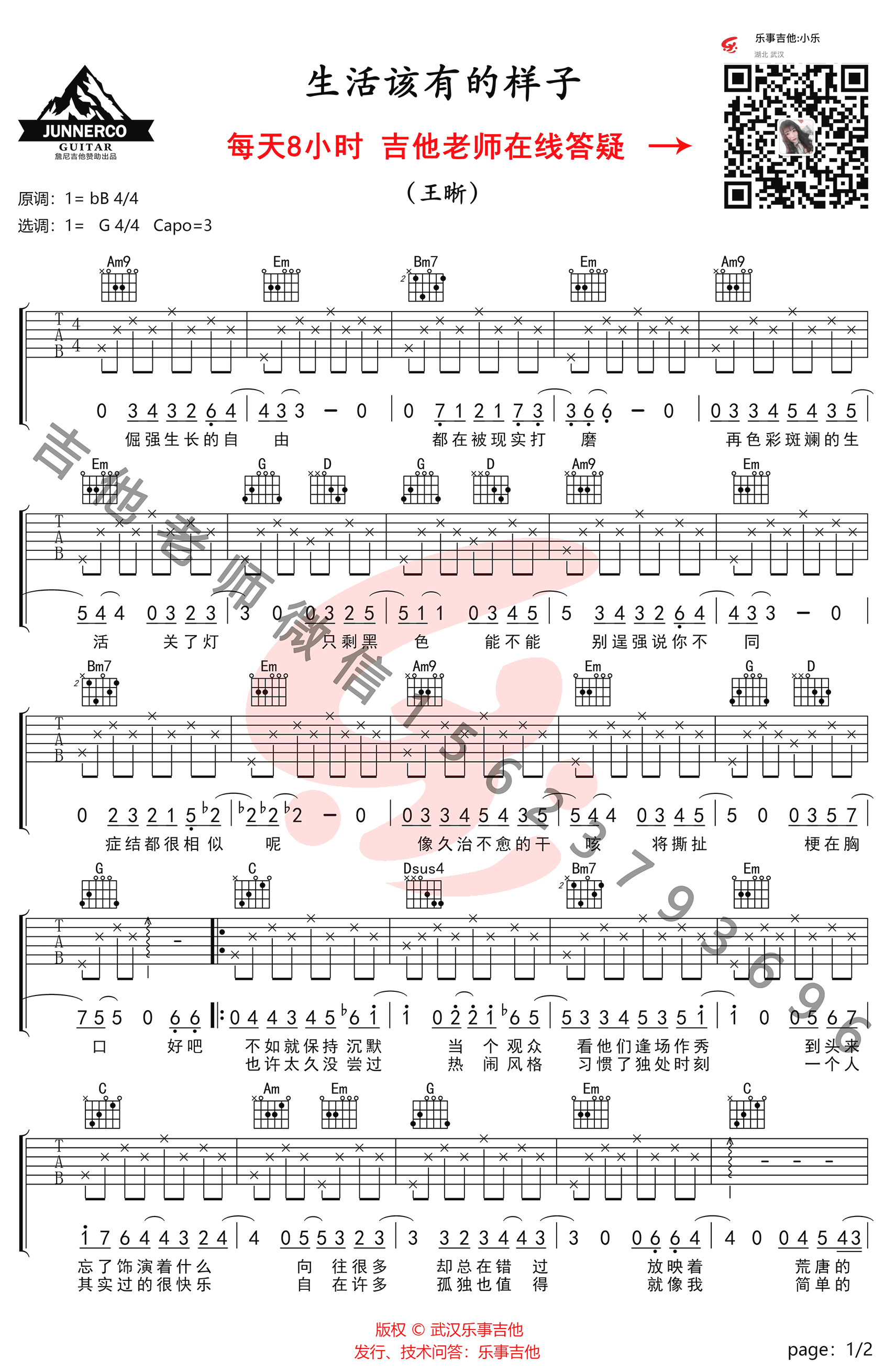 《王晰《生活该有的样子吉他谱》(G调)》内容来自于互联网,不能保证内容的准确性与完整性,仅供学习交流欣赏,请勿用于其它用途,内容版权归原作者及来源网站所有,如有侵犯到您的权益请来信告知,我们将及时删除。