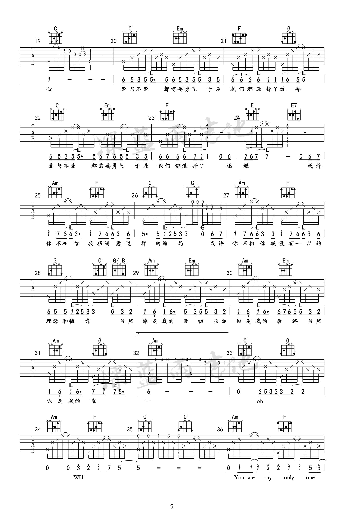 《林俊杰《你是我的唯一吉他谱》(C调)》内容来自于互联网,不能保证内容的准确性与完整性,仅供学习交流欣赏,请勿用于其它用途,内容版权归原作者及来源网站所有,如有侵犯到您的权益请来信告知,我们将及时删除。