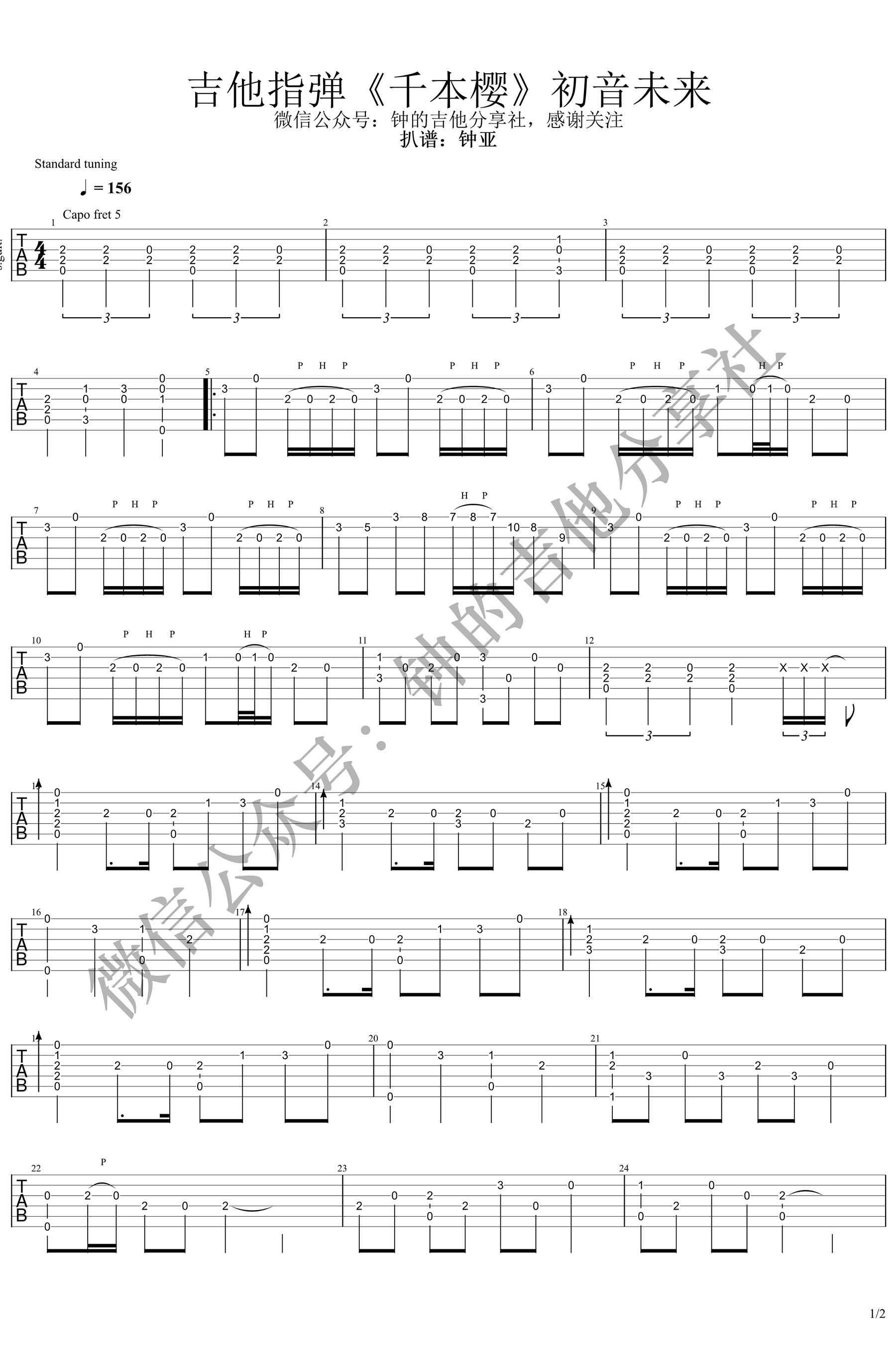 《《千本樱吉他谱》》内容来自于互联网,不能保证内容的准确性与完整性,仅供学习交流欣赏,请勿用于其它用途,内容版权归原作者及来源网站所有,如有侵犯到您的权益请来信告知,我们将及时删除。