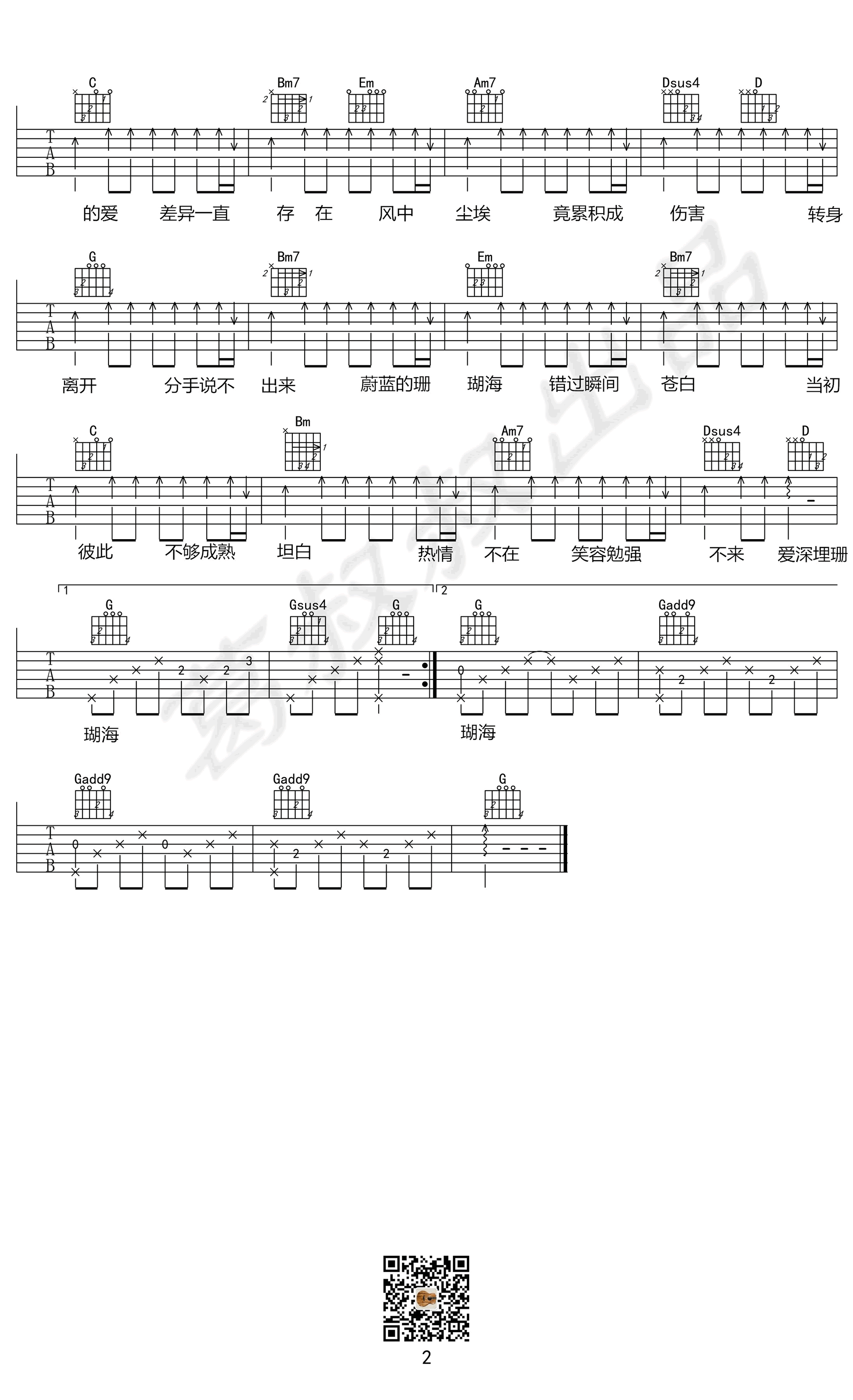 《梁心颐《珊瑚海吉他谱》》内容来自于互联网,不能保证内容的准确性与完整性,仅供学习交流欣赏,请勿用于其它用途,内容版权归原作者及来源网站所有,如有侵犯到您的权益请来信告知,我们将及时删除。