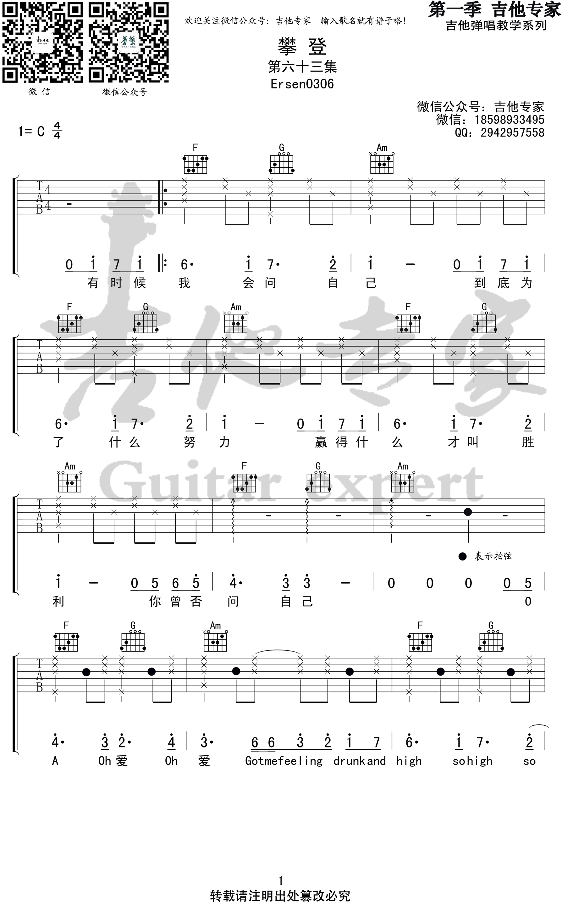 《潘玮柏《攀登吉他谱》(C调)》内容来自于互联网,不能保证内容的准确性与完整性,仅供学习交流欣赏,请勿用于其它用途,内容版权归原作者及来源网站所有,如有侵犯到您的权益请来信告知,我们将及时删除。