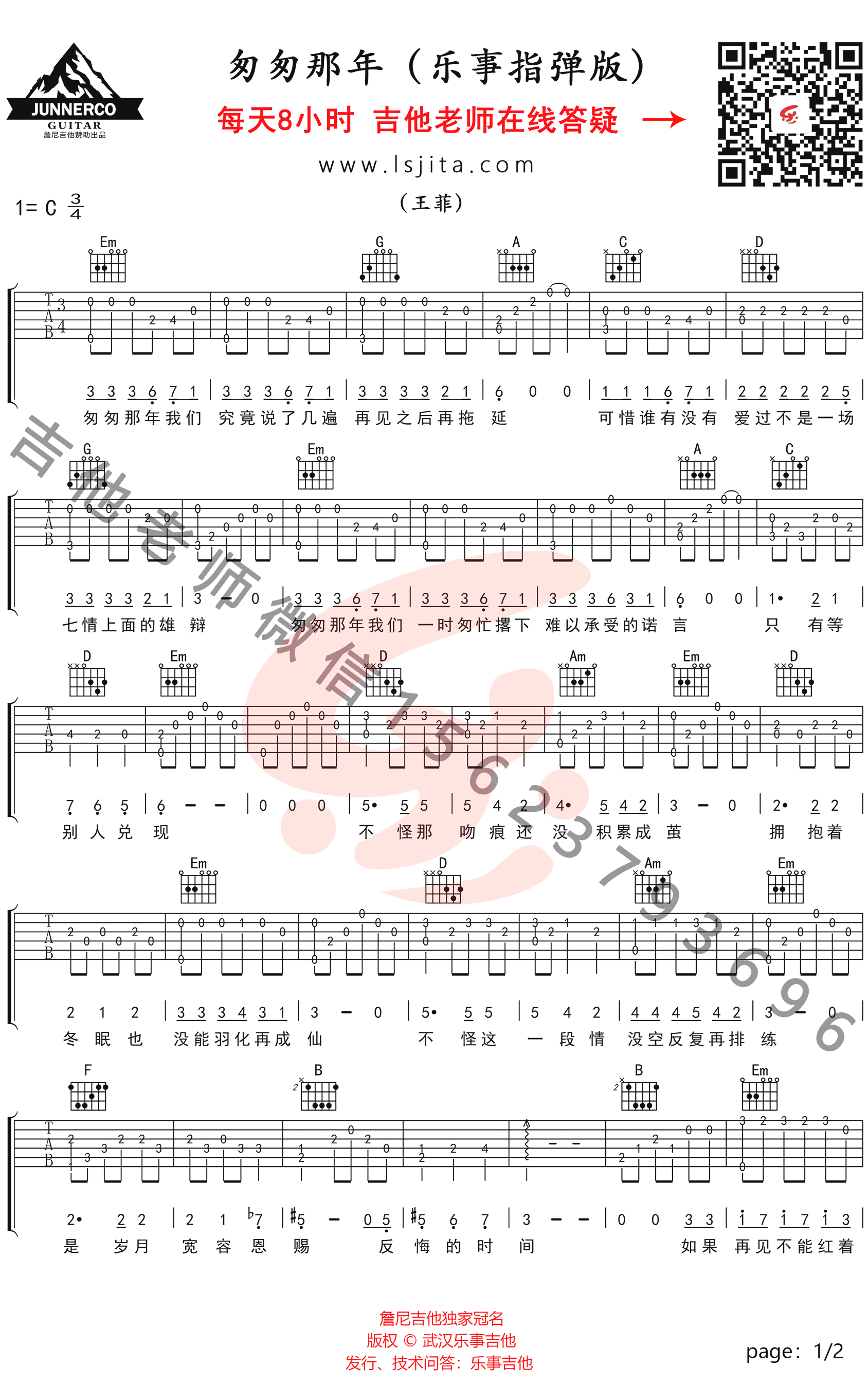 《王菲《匆匆那年吉他谱》》内容来自于互联网,不能保证内容的准确性与完整性,仅供学习交流欣赏,请勿用于其它用途,内容版权归原作者及来源网站所有,如有侵犯到您的权益请来信告知,我们将及时删除。