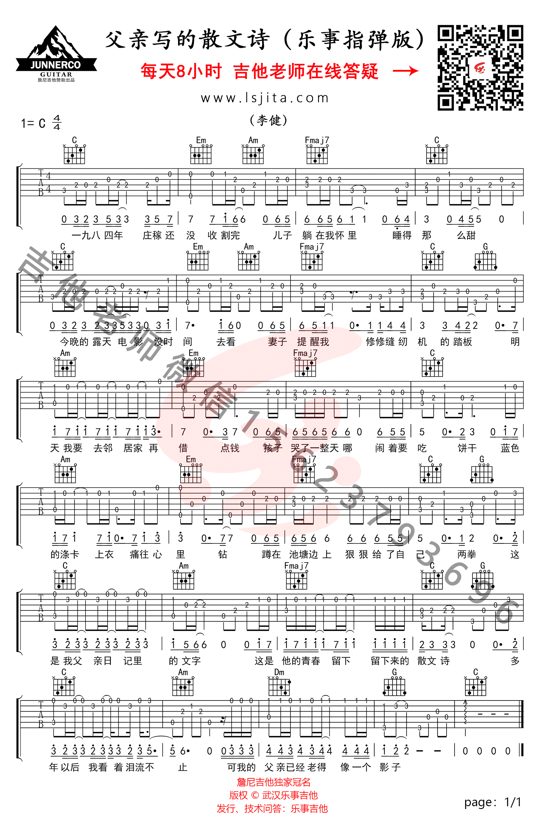《李健《父亲写的散文诗吉他谱》》内容来自于互联网,不能保证内容的准确性与完整性,仅供学习交流欣赏,请勿用于其它用途,内容版权归原作者及来源网站所有,如有侵犯到您的权益请来信告知,我们将及时删除。