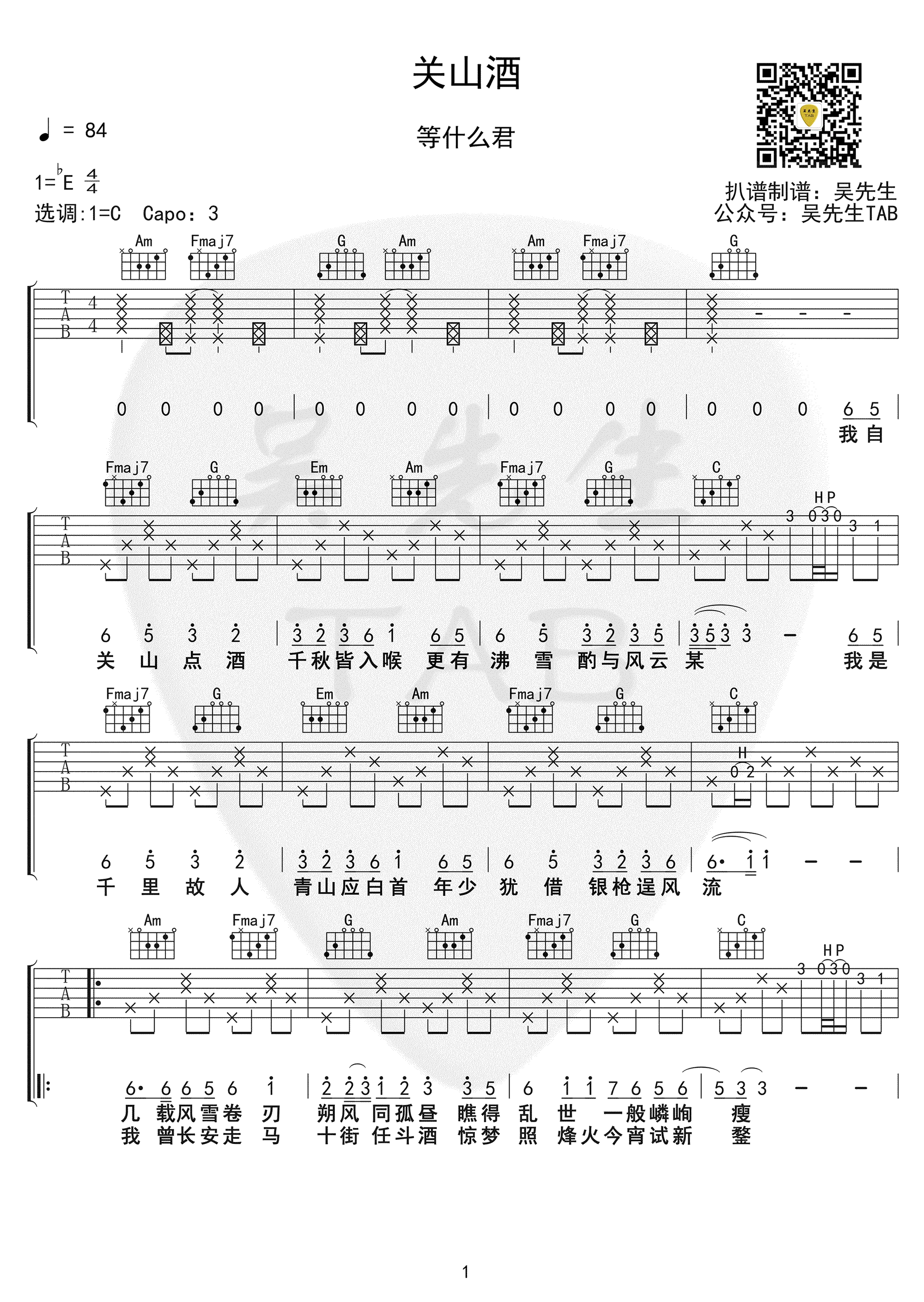 本文标题 《《关山酒吉他谱》(C调)》,网址:https://www.21qupu.com/guitar/38668.html