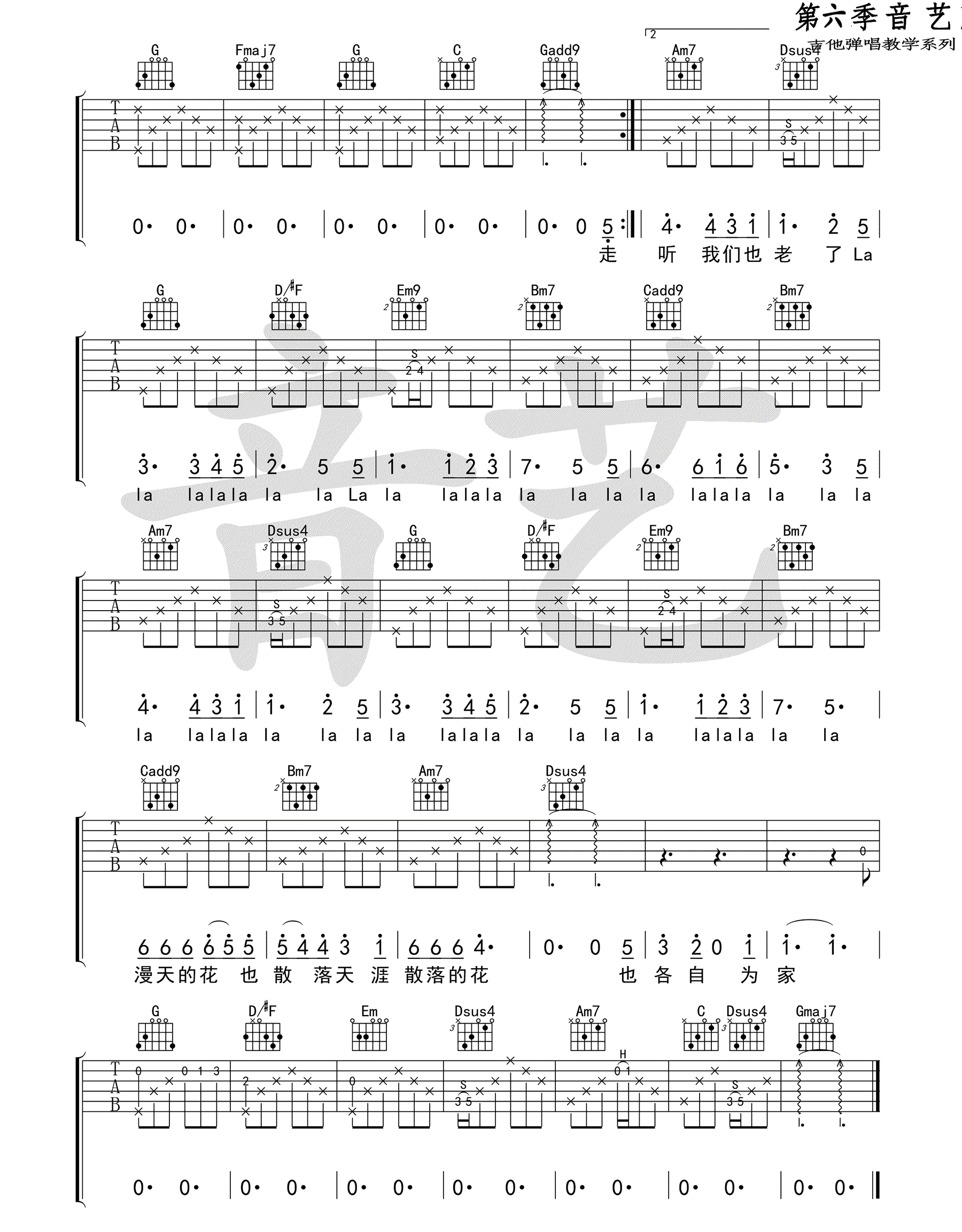 《倪健《花落知多少 G调吉他谱》(G调)》内容来自于互联网,不能保证内容的准确性与完整性,仅供学习交流欣赏,请勿用于其它用途,内容版权归原作者及来源网站所有,如有侵犯到您的权益请来信告知,我们将及时删除。