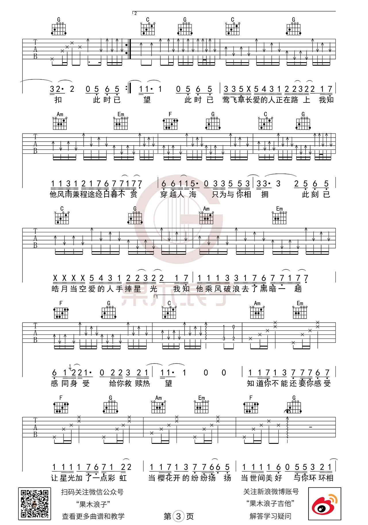 《柏松《世间美好与你环环相扣吉他谱》》内容来自于互联网,不能保证内容的准确性与完整性,仅供学习交流欣赏,请勿用于其它用途,内容版权归原作者及来源网站所有,如有侵犯到您的权益请来信告知,我们将及时删除。