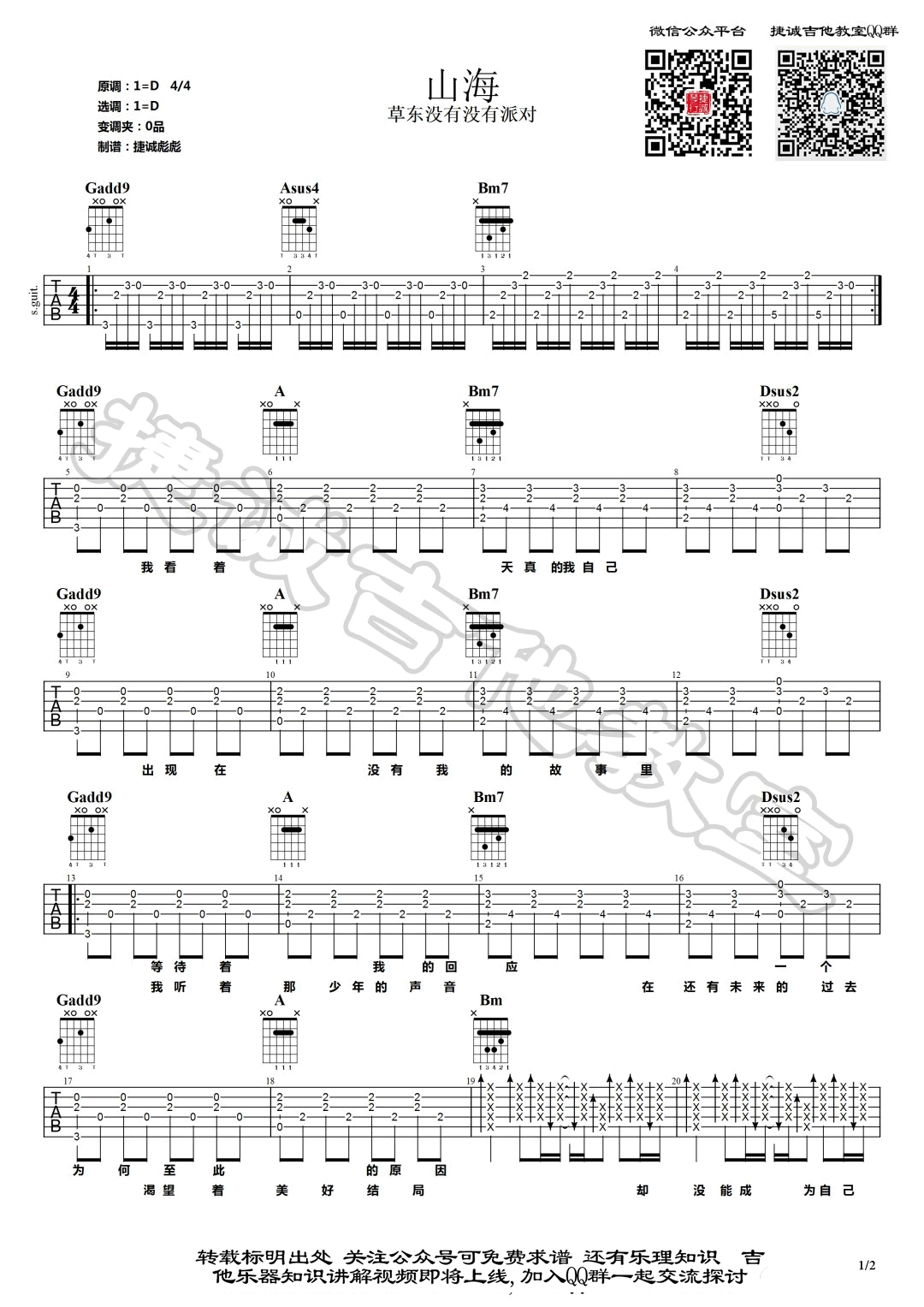 《草东没有派对《山海吉他谱》》内容来自于互联网,不能保证内容的准确性与完整性,仅供学习交流欣赏,请勿用于其它用途,内容版权归原作者及来源网站所有,如有侵犯到您的权益请来信告知,我们将及时删除。