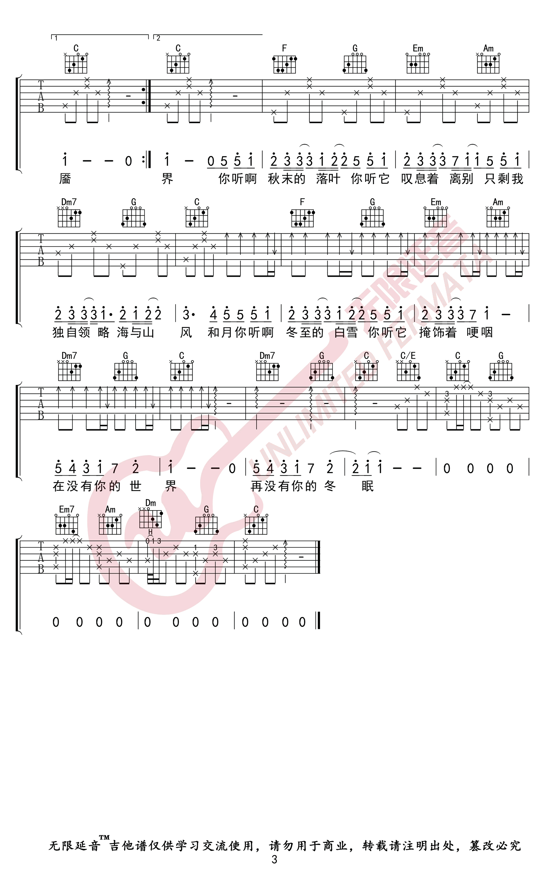 《司南《冬眠吉他谱》(C调)》内容来自于互联网,不能保证内容的准确性与完整性,仅供学习交流欣赏,请勿用于其它用途,内容版权归原作者及来源网站所有,如有侵犯到您的权益请来信告知,我们将及时删除。