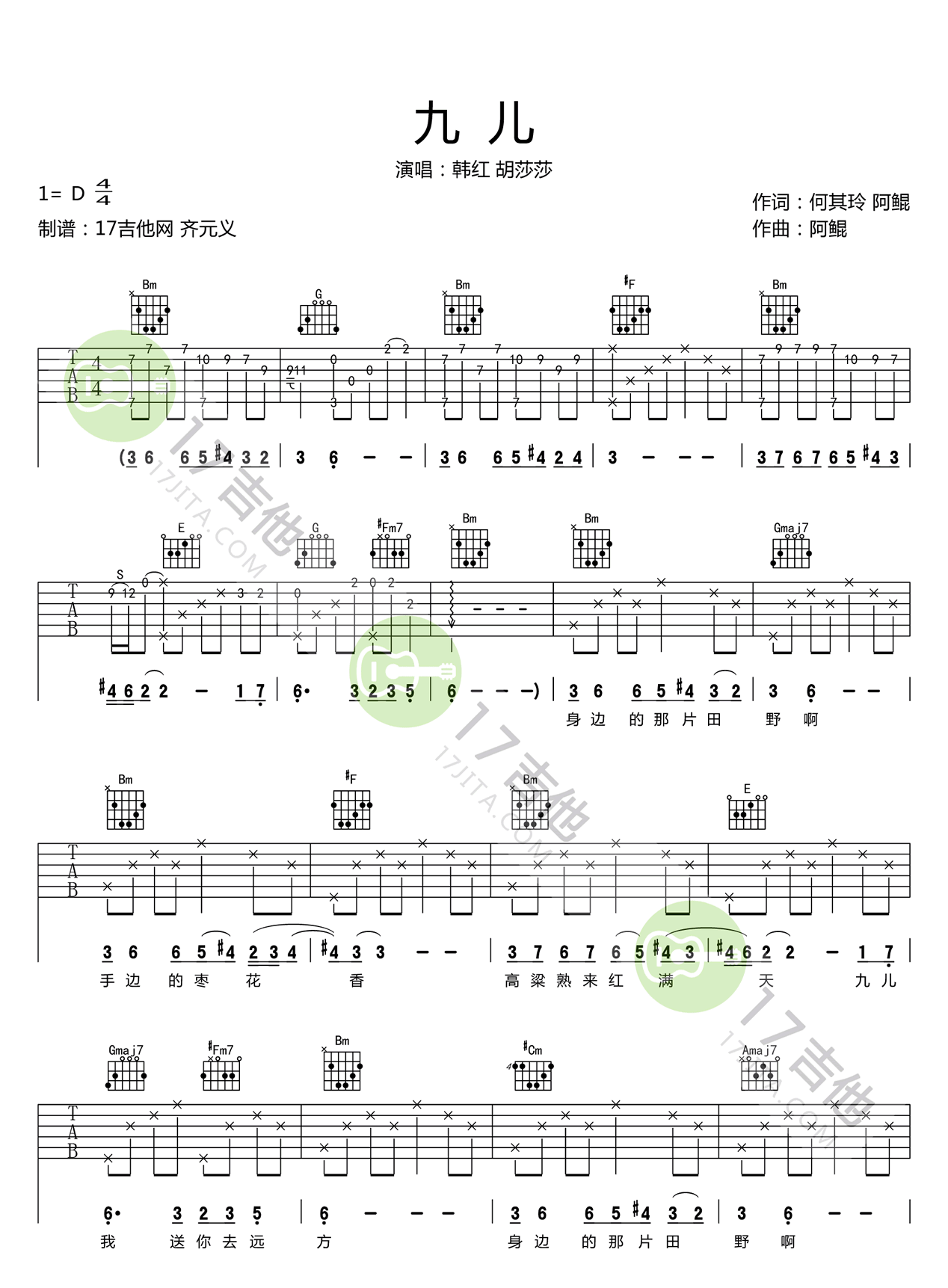 本文标题 《韩红《九儿 D0调吉他谱》》,网址:https://www.21qupu.com/guitar/3904.html