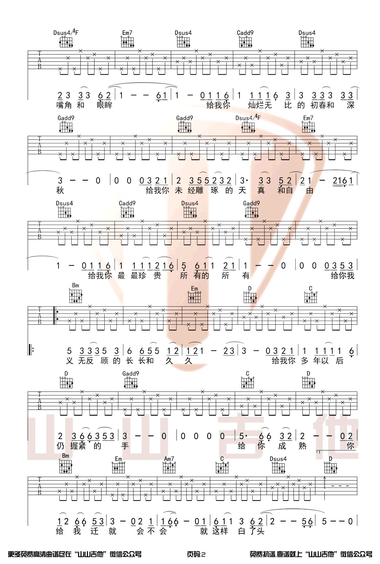 《毛不易《给你给我吉他谱》(G调)》内容来自于互联网,不能保证内容的准确性与完整性,仅供学习交流欣赏,请勿用于其它用途,内容版权归原作者及来源网站所有,如有侵犯到您的权益请来信告知,我们将及时删除。