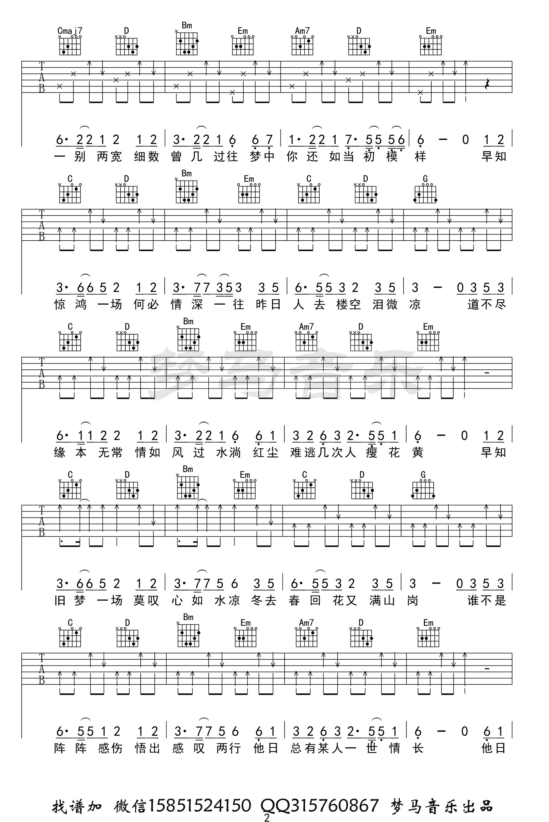 《阿悠悠《旧梦一场吉他谱》(G调)》内容来自于互联网,不能保证内容的准确性与完整性,仅供学习交流欣赏,请勿用于其它用途,内容版权归原作者及来源网站所有,如有侵犯到您的权益请来信告知,我们将及时删除。