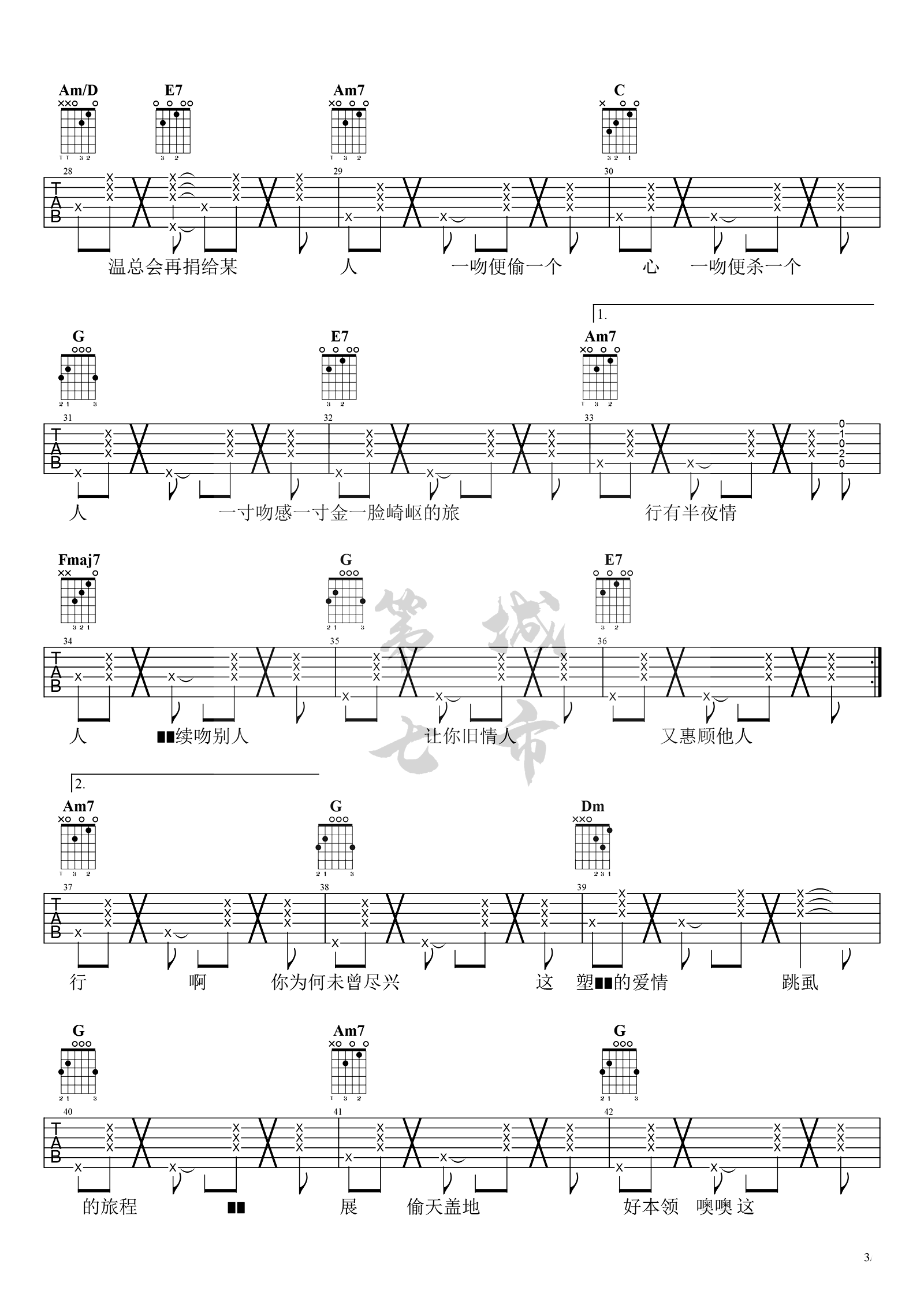 《杨千嬅《处处吻吉他谱》(C调)》内容来自于互联网,不能保证内容的准确性与完整性,仅供学习交流欣赏,请勿用于其它用途,内容版权归原作者及来源网站所有,如有侵犯到您的权益请来信告知,我们将及时删除。