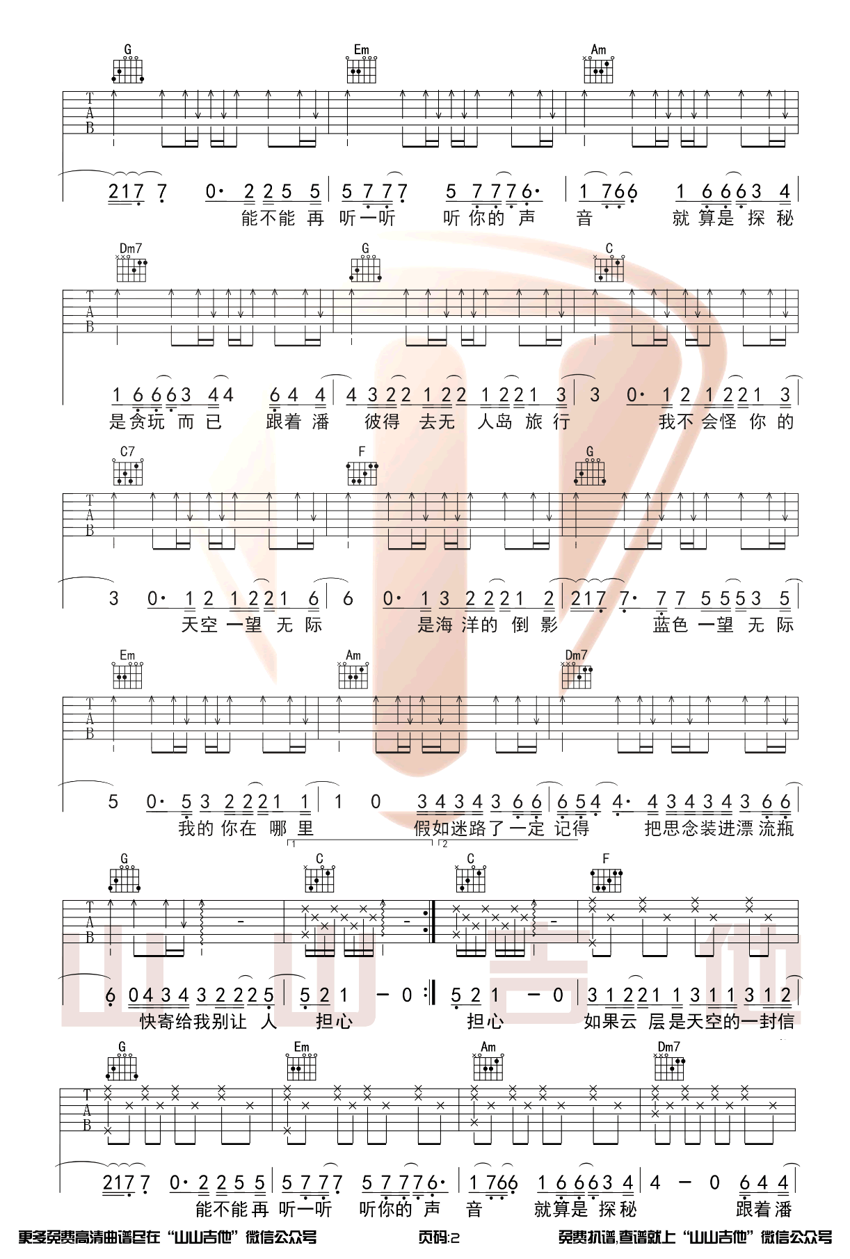《任然《无人之岛吉他谱》(C调)》内容来自于互联网,不能保证内容的准确性与完整性,仅供学习交流欣赏,请勿用于其它用途,内容版权归原作者及来源网站所有,如有侵犯到您的权益请来信告知,我们将及时删除。