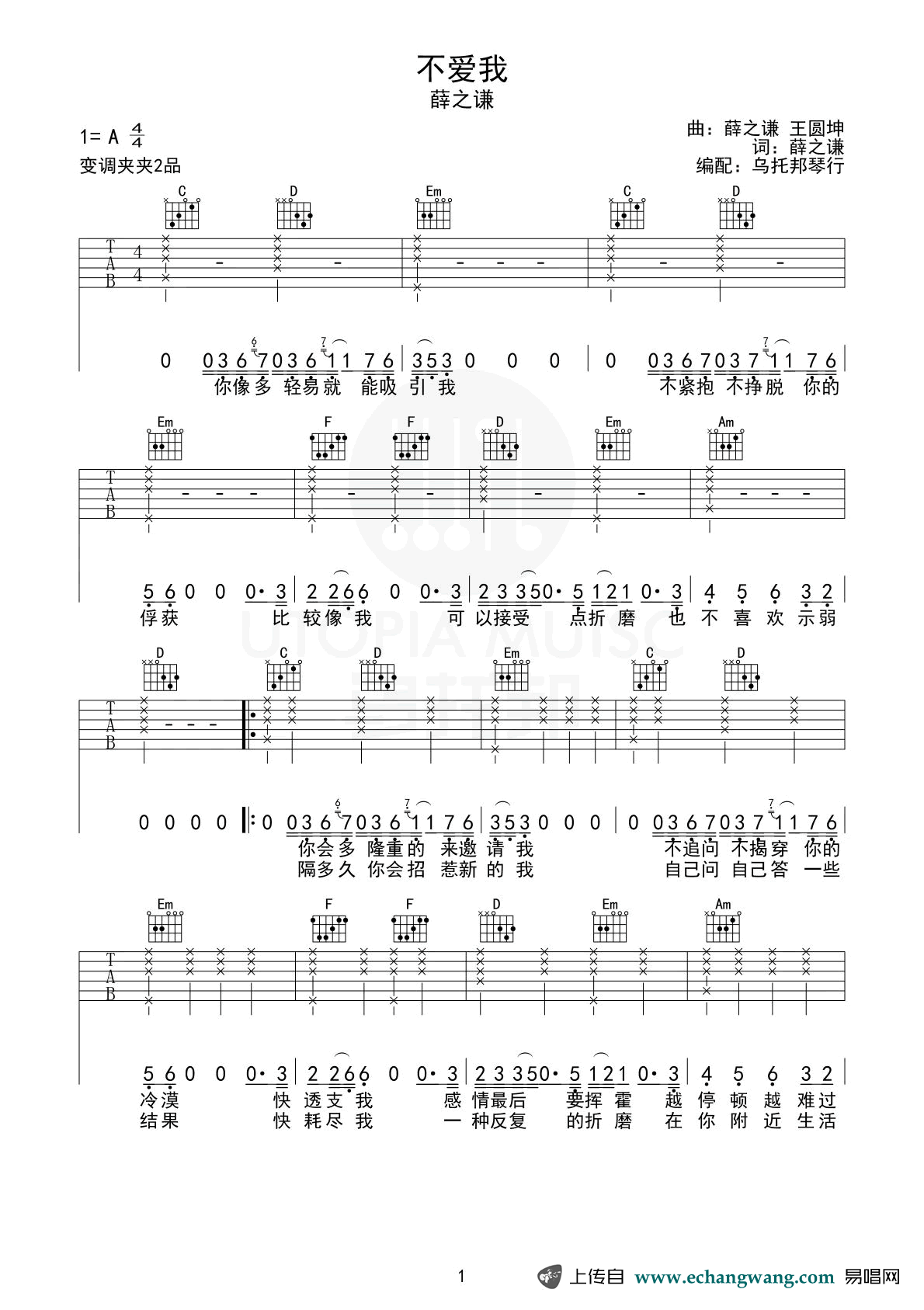 《薛之谦《不爱我吉他谱》(G调)》内容来自于互联网,不能保证内容的准确性与完整性,仅供学习交流欣赏,请勿用于其它用途,内容版权归原作者及来源网站所有,如有侵犯到您的权益请来信告知,我们将及时删除。