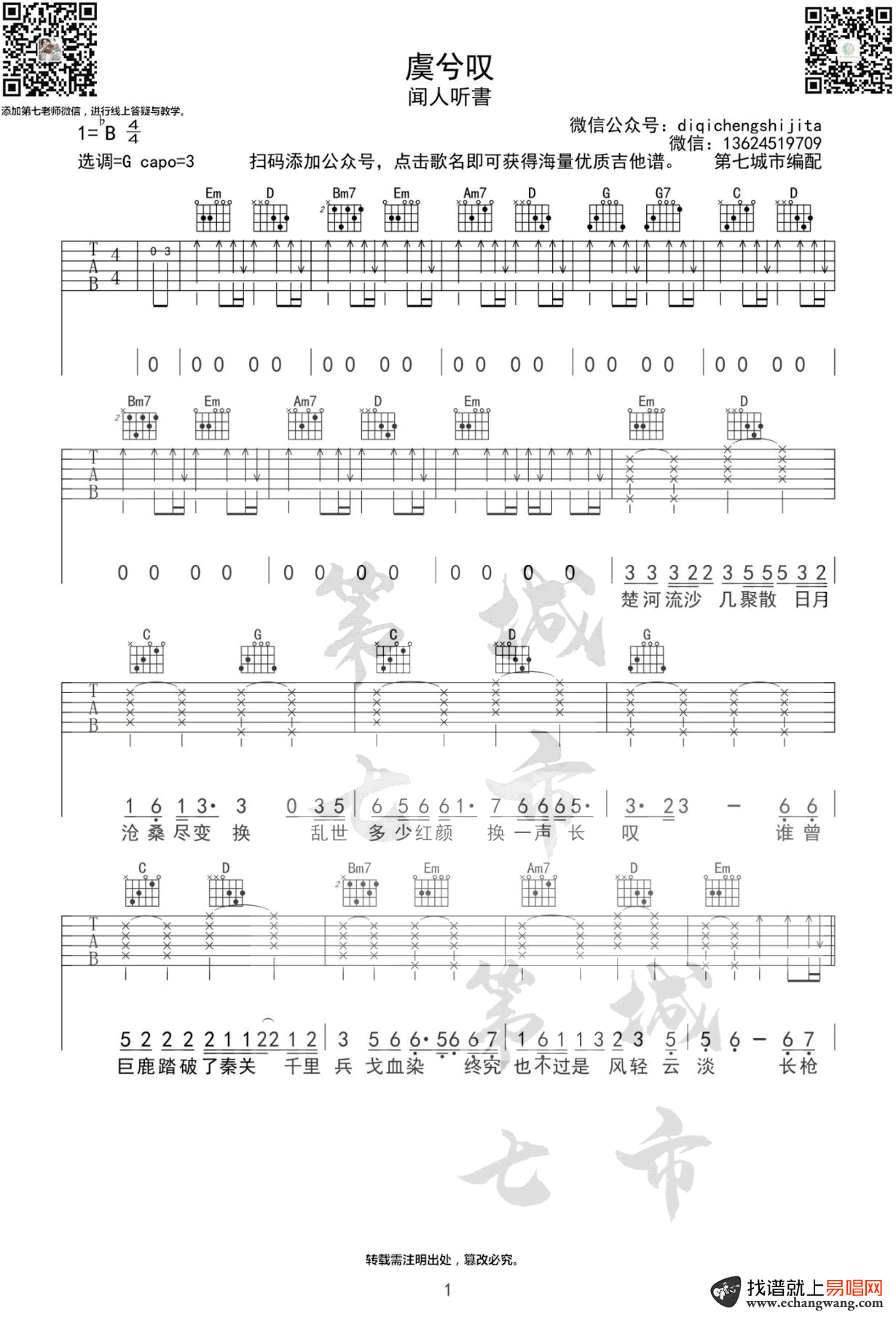《虞姬《虞兮叹吉他谱》(G调)》内容来自于互联网,不能保证内容的准确性与完整性,仅供学习交流欣赏,请勿用于其它用途,内容版权归原作者及来源网站所有,如有侵犯到您的权益请来信告知,我们将及时删除。