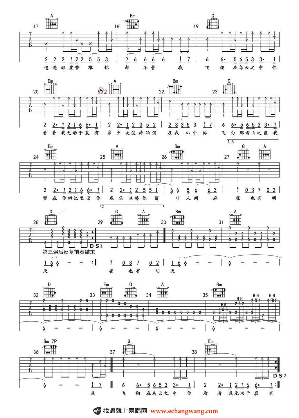 《李荣浩《麻雀吉他谱》(D调)》内容来自于互联网,不能保证内容的准确性与完整性,仅供学习交流欣赏,请勿用于其它用途,内容版权归原作者及来源网站所有,如有侵犯到您的权益请来信告知,我们将及时删除。