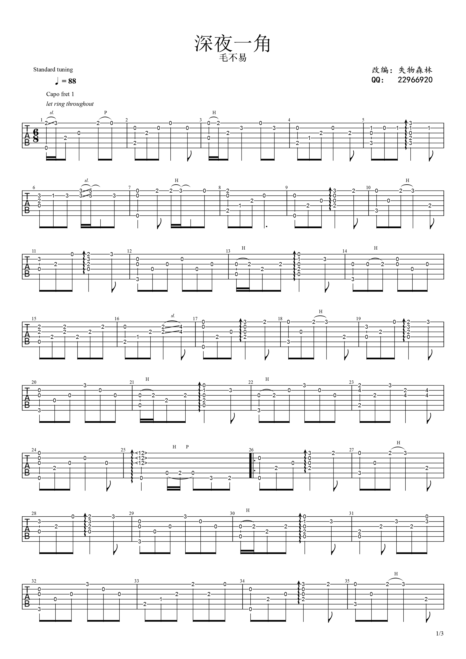 《毛不易《深夜一角指弹吉他谱》》内容来自于互联网,不能保证内容的准确性与完整性,仅供学习交流欣赏,请勿用于其它用途,内容版权归原作者及来源网站所有,如有侵犯到您的权益请来信告知,我们将及时删除。