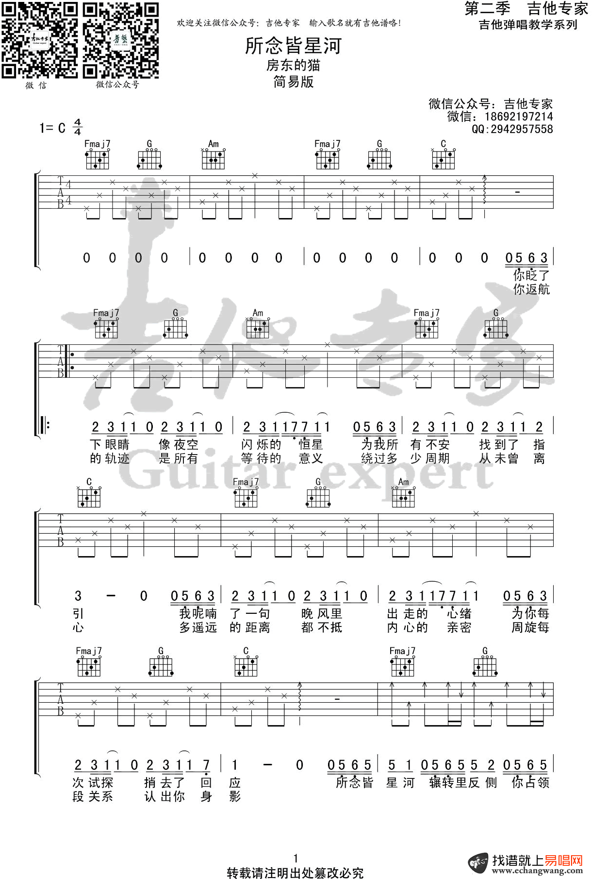 《房东的猫《所念皆星河吉他谱》(C调)》内容来自于互联网,不能保证内容的准确性与完整性,仅供学习交流欣赏,请勿用于其它用途,内容版权归原作者及来源网站所有,如有侵犯到您的权益请来信告知,我们将及时删除。