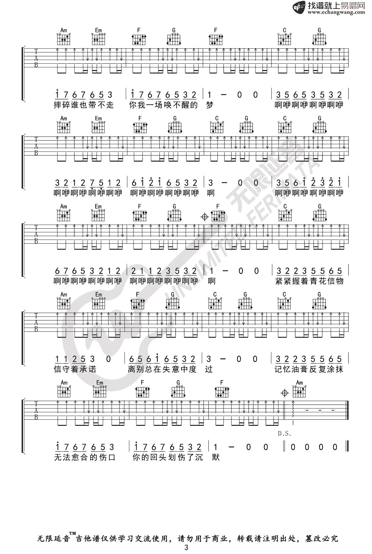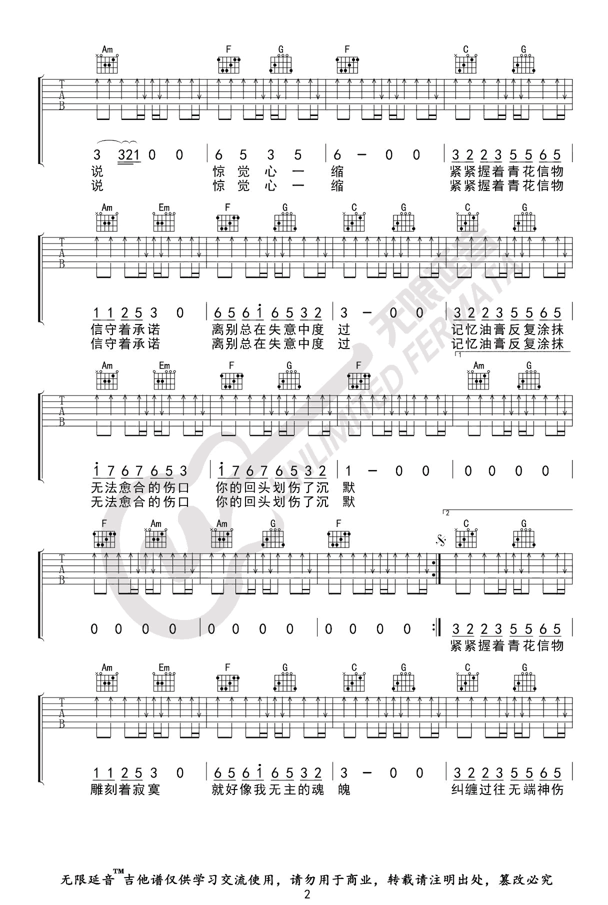 《周传雄《青花吉他谱》(C调)》内容来自于互联网,不能保证内容的准确性与完整性,仅供学习交流欣赏,请勿用于其它用途,内容版权归原作者及来源网站所有,如有侵犯到您的权益请来信告知,我们将及时删除。
