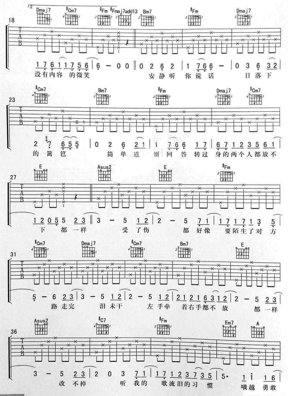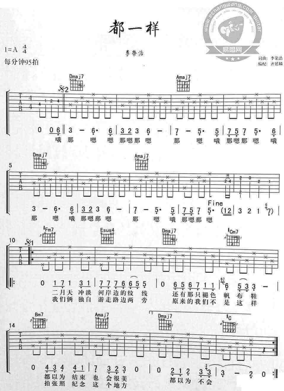 《李荣浩《都一样吉他谱》》内容来自于互联网,不能保证内容的准确性与完整性,仅供学习交流欣赏,请勿用于其它用途,内容版权归原作者及来源网站所有,如有侵犯到您的权益请来信告知,我们将及时删除。