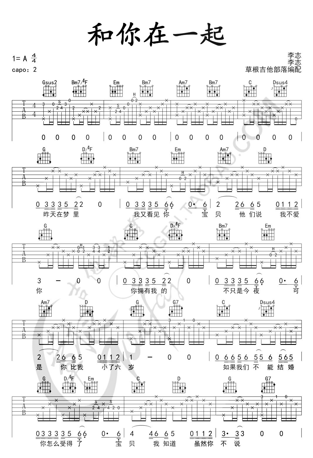 《乔任梁《和你在一起 李志吉他谱》》内容来自于互联网,不能保证内容的准确性与完整性,仅供学习交流欣赏,请勿用于其它用途,内容版权归原作者及来源网站所有,如有侵犯到您的权益请来信告知,我们将及时删除。