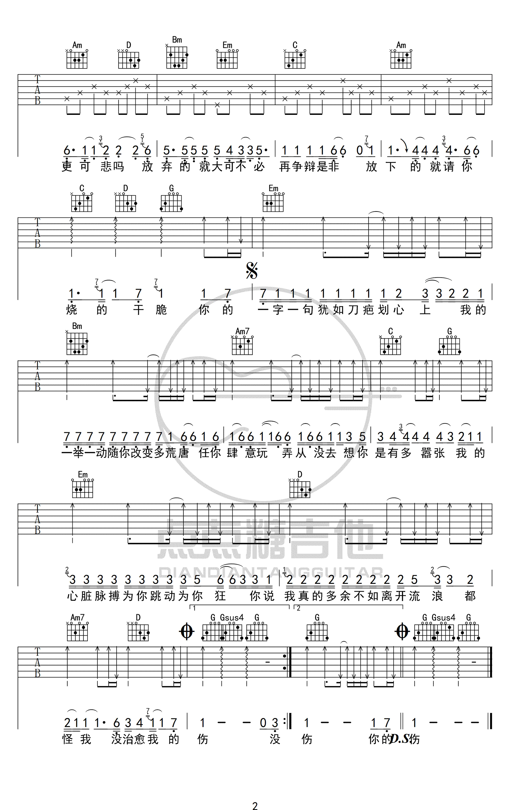 这是一首由新生代实力歌手en演唱的热门歌曲,曲谱采用嚣张吉他谱,原调B,通过夹四品变调至G调指法。主歌以分解和副歌以扫弦方式呈现,整体编排嚣张六线谱,同时提供两张弹唱图片谱。这首歌曲展现了点点糖吉他编配的精湛技艺,为听众呈现出一种嚣张而动感的音乐氛围。