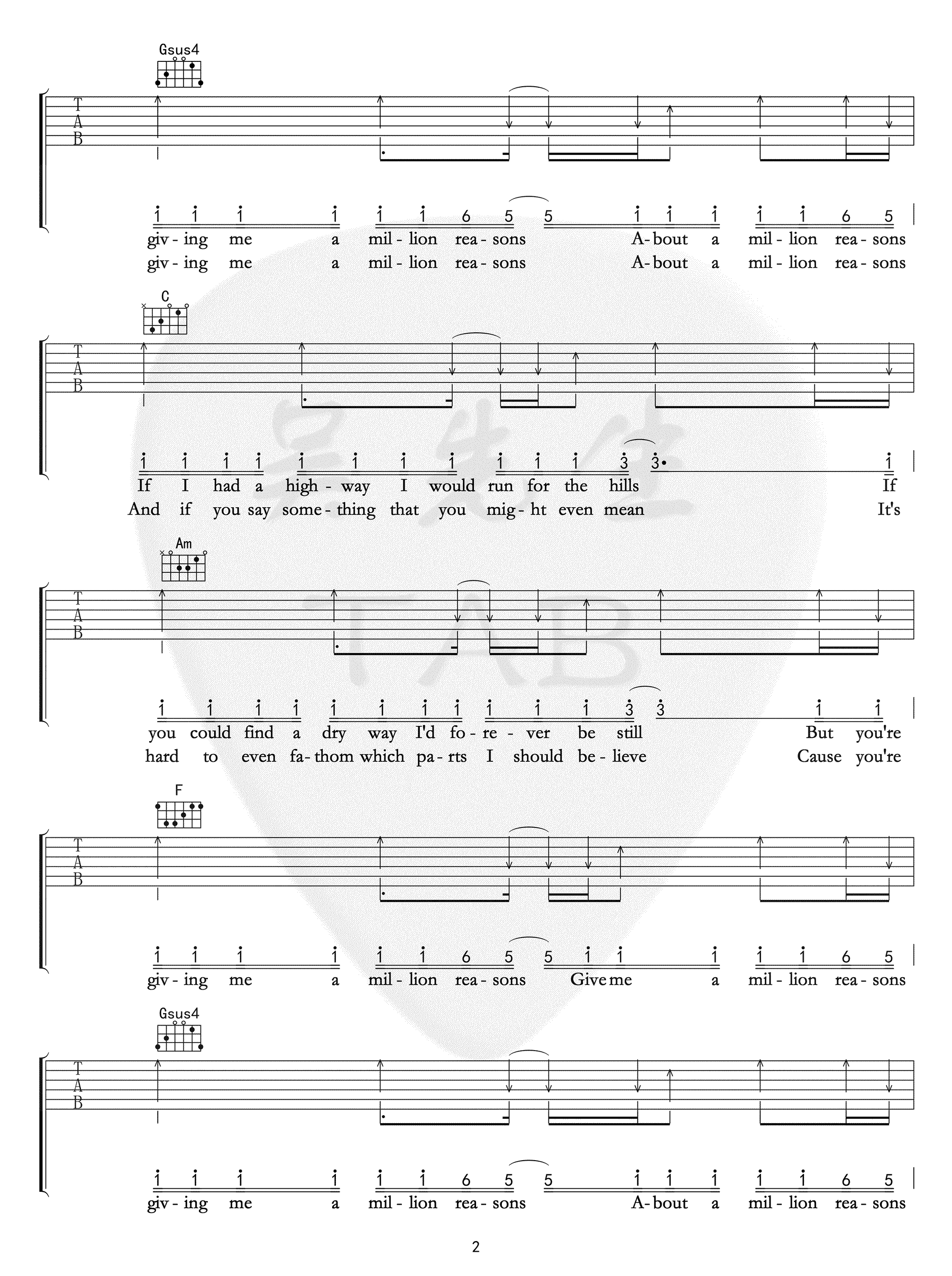 Lady Gaga《Million Reasons吉他谱》(C调)