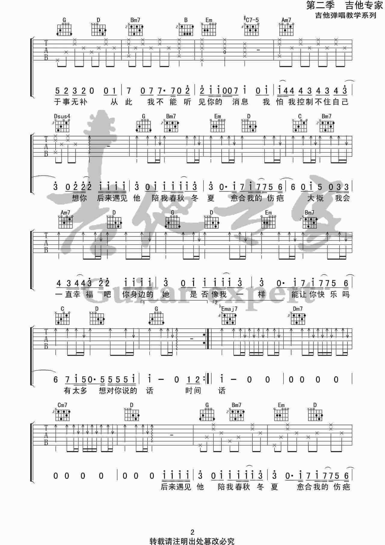 《《后来遇见他吉他谱》(G调)》内容来自于互联网,不能保证内容的准确性与完整性,仅供学习交流欣赏,请勿用于其它用途,内容版权归原作者及来源网站所有,如有侵犯到您的权益请来信告知,我们将及时删除。