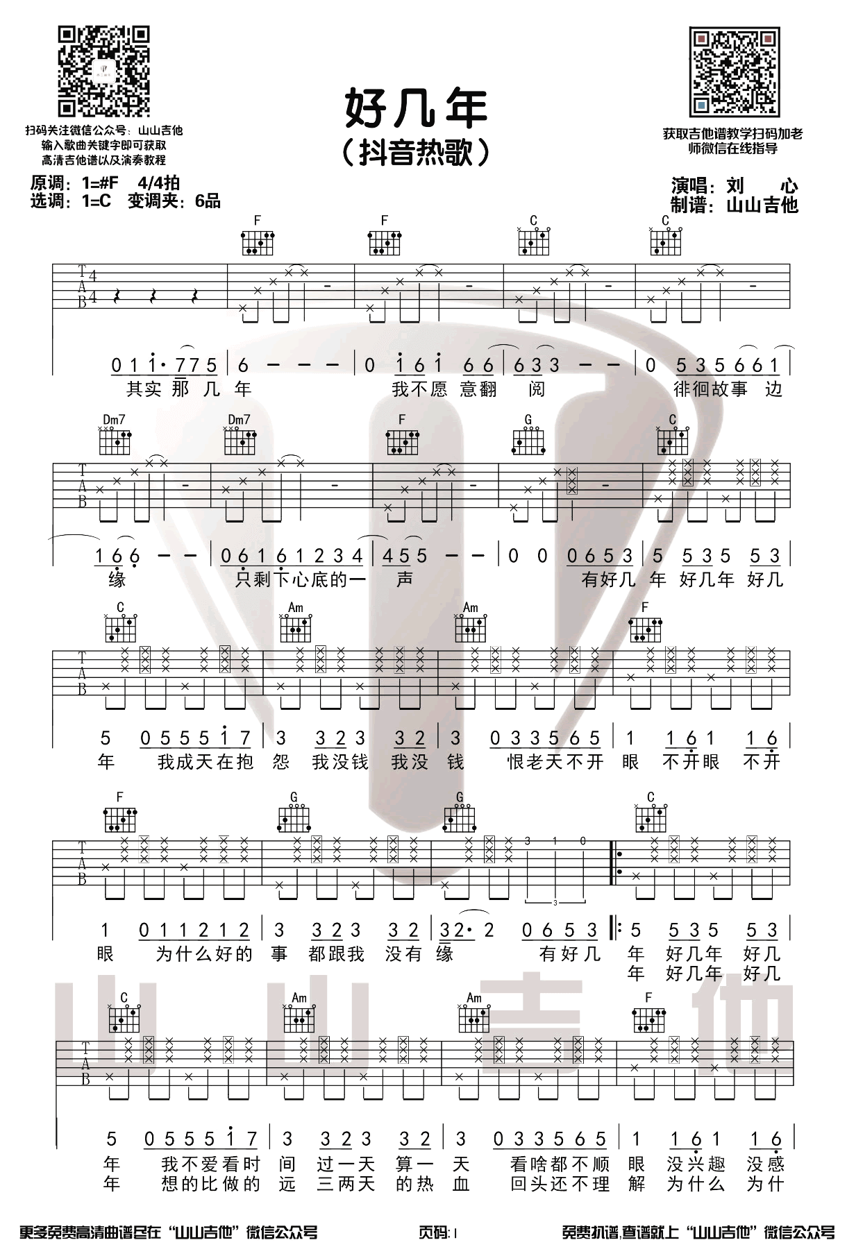 《刘心《好几年吉他谱》(C调)》内容来自于互联网,不能保证内容的准确性与完整性,仅供学习交流欣赏,请勿用于其它用途,内容版权归原作者及来源网站所有,如有侵犯到您的权益请来信告知,我们将及时删除。